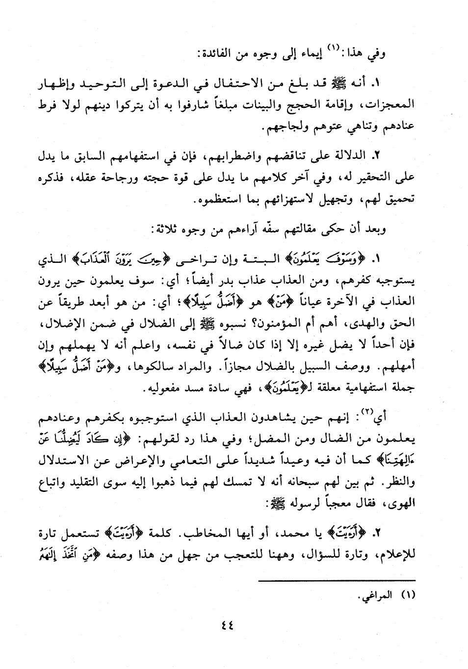 1 - أنه - صلى الله عليه وسلم - قد بلغ من الاحتفال في الدعوة إلى التوحيد وإظهار المعجزات، وإقامة الحجج والبينات مبلغًا شارفوا به أن يتركوا دينهم لولا فرط عنادهم وتناهي عتوهم ولجاجهم.