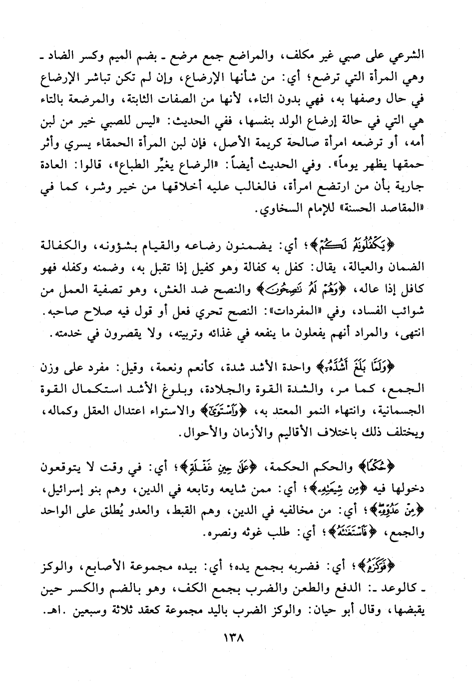 الشرعي على صبي غير مكلف، والمراضع جمع مرضع - بضم الميم وكسر الضاد - وهي المرأة التي ترضع؛ أي: من شأنها الإرضاع، وإن لم تكن تباشر الإرضاع في حال وصفها به، فهي بدون التاء, لأنها من الصفات الثابتة، والمرضعة بالتاء هي التي في حالة إرضاع الولد بنفسها، ففي الحديث: "ليس للصبي خير من لبن أمه، أو ترضعه امرأة صالحة كريمة الأصل، فان لبن المرأة الحمقاء يسري وأثر حمقها يظهر يومًا". وفي الحديث أيضًا: "الرضاع يغيِّر الطباع"، قالوا: العادة جارية بأن من ارتضع امرأة، فالغالب عليه أخلاقها من خير وشر، كما في "المقاصد الحسنة" للإمام السخاوي.