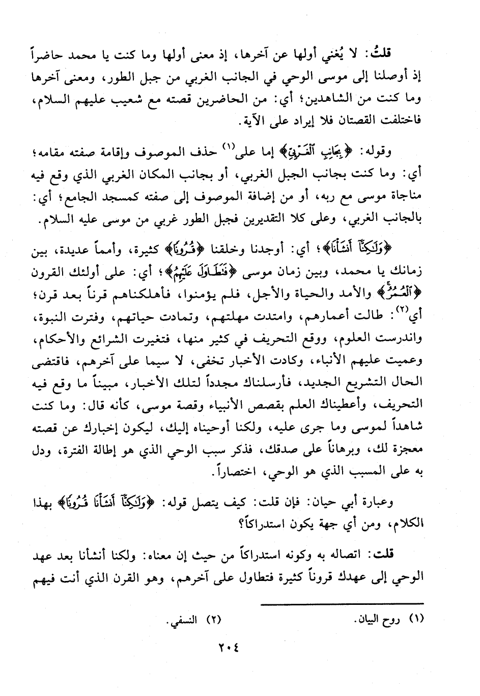 وعبارة أبي حيان: فإن قلت: كيف يتصل قوله: {وَلَكِنَّا أَنْشَأْنَا قُرُونًا} بهذا الكلام، ومن أي جهة يكون استدراكًا؟