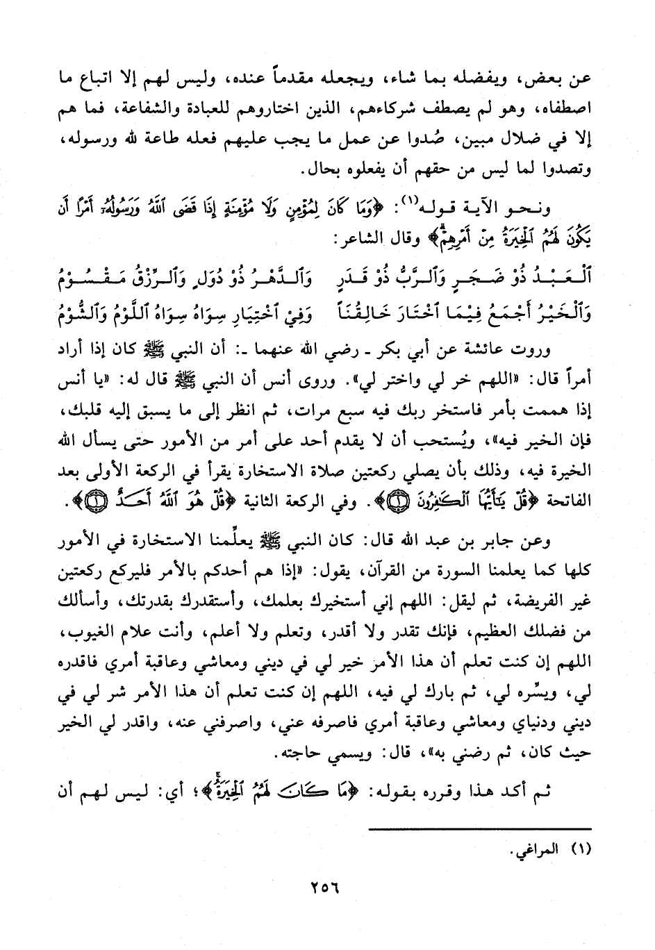 ونحو الآية قوله (¬1)؛ {وَمَا كَانَ لِمُؤْمِنٍ وَلَا مُؤْمِنَةٍ إِذَا قَضَى اللَّهُ وَرَسُولُهُ أَمْرًا أَنْ يَكُونَ لَهُمُ الْخِيَرَةُ مِنْ أَمْرِهِمْ} وقال الشاعر: