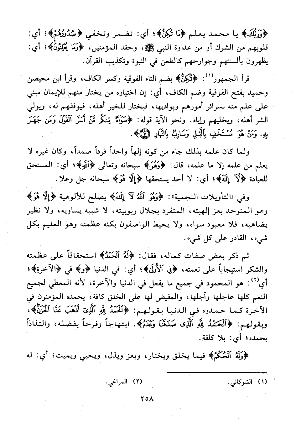 قرأ الجمهور (¬1): {تُكِنُّ} بضم التاء الفوقية وكسر الكاف، وقرأ ابن محيصن وحميد بفتح الفوقية وضم الكاف، أي: إن اختياره من يختار منهم للإيمان مبني على علم منه بسرائر أمورهم وبواديها، فيختار للخير أهله، فيوفقهم له، ويولي الشر أهله، ويخليهم وإياه. ونحو الآية قوله: {سَوَاءٌ مِنْكُمْ مَنْ أَسَرَّ الْقَوْلَ وَمَنْ جَهَرَ بِهِ وَمَنْ هُوَ مُسْتَخْفٍ بِاللَّيْلِ وَسَارِبٌ بِالنَّهَارِ (10)}.