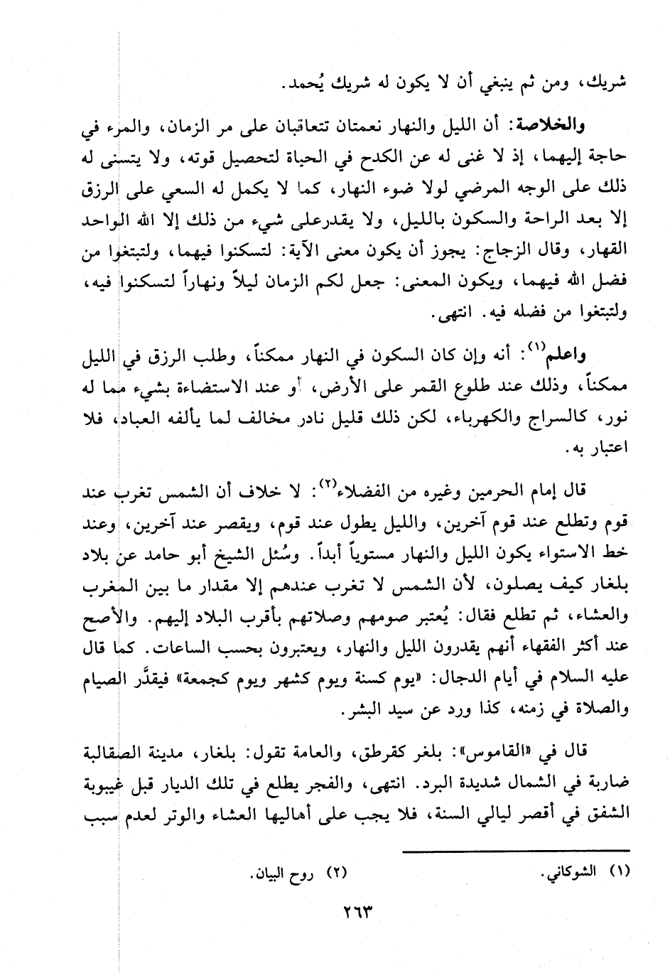 واعلم (¬1): أنه وإن كان السكون في النهار ممكنًا، وطلب الرزق في الليل ممكنًا، وذلك عند طلوع القمر على الأرض، أو عند الاستضاءة بشيء مما له نور، كالسراج والكهرباء، لكن ذلك قليل نادر. مخالف لما يألفه العباد، فلا اعتبار به.