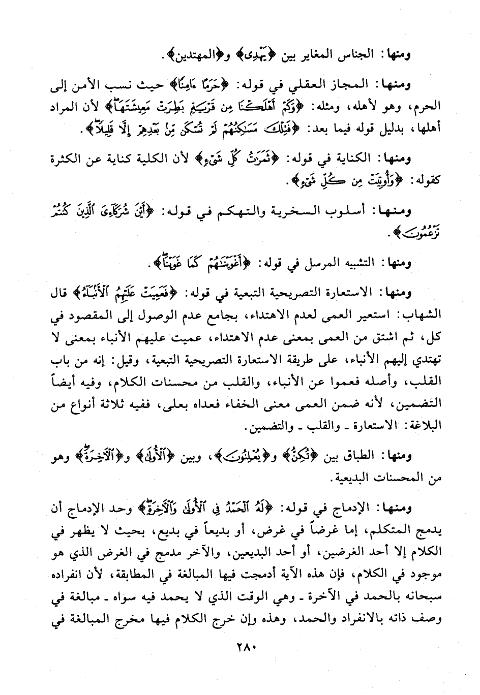 ومنها: المجاز العقلي في قوله: {حَرَمًا آمِنًا} حيث نسب الأمن إلى الحرم، وهو لأهله، ومثله: {وَكَمْ أَهْلَكْنَا مِنْ قَرْيَةٍ بَطِرَتْ مَعِيشَتَهَا} لأن المراد أهلها، بدليل قوله فيما بعد: {فَتِلْكَ مَسَاكِنُهُمْ لَمْ تُسْكَنْ مِنْ بَعْدِهِمْ إِلَّا قَلِيلًا}.