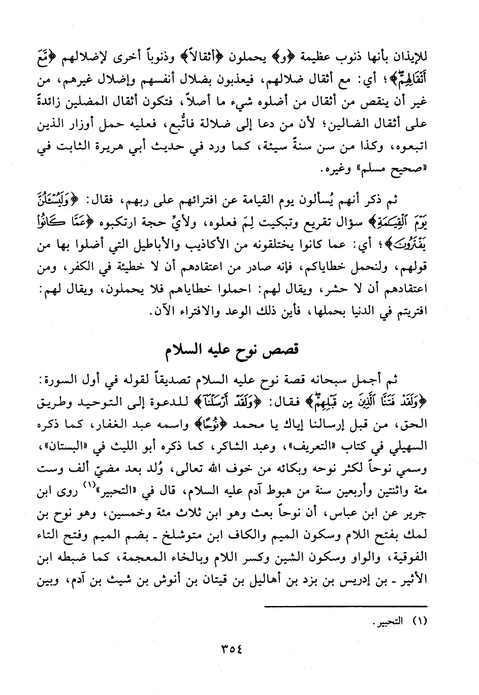 14 - ثم أجمل سبحانه قصة نوح عليه السلام تصديقًا لقوله في أول السورة: {وَلَقَدْ فَتَنَّا الَّذِينَ مِنْ قَبْلِهِمْ} فقال: {وَلَقَدْ أَرْسَلْنَا} للدعوة إلى التوحيد وطريق الحق، من قبل إرسالنا إياك يا محمد {نُوحًا} واسمه عبد الغفار، كما ذكره السهيلي في كتاب "التعريف"، وعبد الشاكر، كما ذكره أبو الليث في "البستان"، وسمي نوحًا لكثر نوحه وبكائه من خوف الله تعالى، وُلد بعد مضيّ ألف وست مئة واثنتين وأربعين سنة من هبوط آدم عليه السلام، قال في "التحبير" (¬1) روى ابن جرير عن ابن عباس، أن نوحًا بعث وهو ابن ثلاث مئة وخمسين، وهو نوح بن لمك بفتح اللام وسكون الميم والكاف ابن متوشلخ - بضم الميم وفتح التاء الفوقية، والواو وسكون الشين وكسر اللام وبالخاء المعجمة، كما ضبطه ابن الأثير - بن إدريس بن بزد بن أهاليل بن قيتان بن أنوش بن شيث بن آدم، وبين