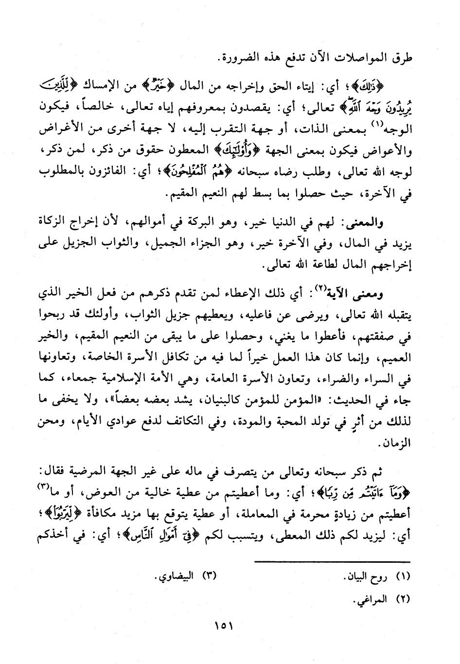 ومعنى الآية (¬2): أي ذلك الإعطاء لمن تقدم ذكرهم من فعل الخير الذي يتقبله الله تعالى، ويرضى عن فاعليه، ويعطيهم جزيل الثواب، وأولئك قد ربحوا في صفقتهم، فأعطوا ما يغني، وحصلوا على ما يبقى من النعيم المقيم، والخير العميم، وإنما كان هذا العمل خيرًا لما فيه من تكافل الأسرة الخاصة، وتعاونها في السراء والضراء، وتعاون الأسرة العامة، وهي الأمة الإِسلامية جمعاء، كما جاء في الحديث: "المؤمن للمؤمن كالبنيان، يشد بعضه بعضًا"، ولا يخفى ما لذلك من أثرِ في تولد المحبة والمودة، وفي التكاتف لدفع عوادي الأيام، ومحن الزمان.