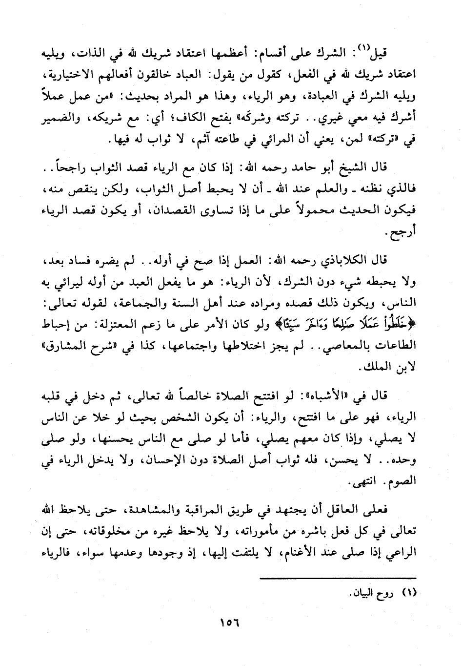 فعلى العاقل أن يجتهد في طريق المراقبة والمشاهدة، حتى يلاحظ الله تعالى في كل فعل باشره من مأموراته، ولا يلاحظ غيره من مخلوقاته، حتى إن الراعي إذا صلى عند الأغنام، لا يلتفت إليها، إذ وجودها وعدمها سواء، فالرياء