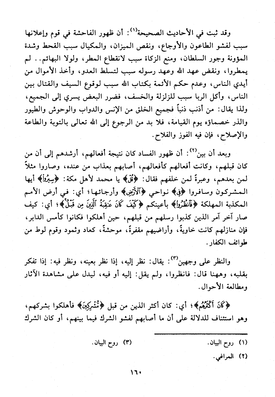 42 - وبعد أن بين (¬2): أن ظهور الفساد كان نتيجة أفعالهم، أرشدهم إلى أن من كان قبلهم، وكانت أفعالهم كافعالهم، أصابهم بعذاب من عنده، وصاروا مثلًا لمن بعدهم، وعبرةً لمن خلفهم فقال: {قُلْ} يا محمد لأهل مكة: {سِيرُوا} أيها المشركون وسافروا {فِي} نواحي {الْأَرْضِ} وأرجائها؛ أي: في أرض الأمم المكذبة المهلكة {فَانْظُرُوا} بأعينكم {كَيْفَ كَانَ عَاقِبَةُ الَّذِينَ مِنْ قَبْلُ}؛ أي: كيف صار آخر آمر الذين كذبوا رسلهم من قبلهم، حين أهلكوا فكانوا كأمس الدابر، فإن منازلهم كانت خاويةً، وأراضيهم مقفرةً، موحشةً، كعاد وثمود وقوم لوط من طوائف الكفار.