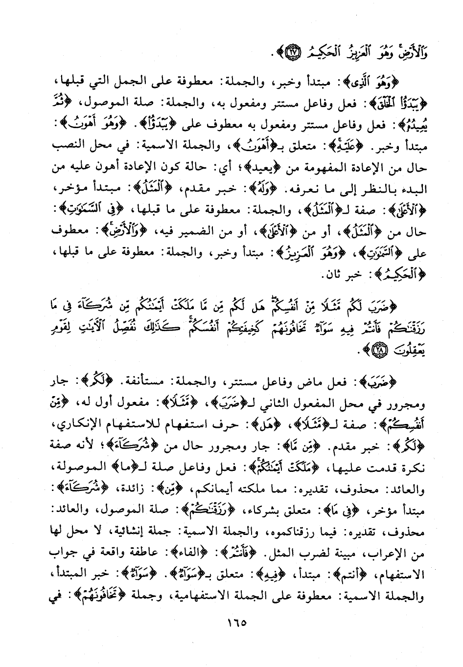 {وَهُوَ الَّذِي}: مبتدأ وخبر، والجملة: معطوفة على الجمل التي قبلها، {يَبْدَأُ الْخَلْقَ}: فعل وفاعل مستتر ومفعول به، والجملة: صلة الموصول، {ثُمَّ يُعِيدُهُ}: فعل وفاعل مستتر ومفعول به معطوف على {يبدؤُا}. {وَهُوَ أَهْوَنُ}: مبتدأ وخبر. {عَلَيْهِ}: متعلق بـ {أَهْوَنُ}، والجملة الاسمية: في محل النصب حال من الإعادة المفهومة من {يُعِيدُ}؛ أي: حالة كون الإعادة أهون عليه من البدء بالنظر إلى ما نعرفه. {وَلَهُ}: خبر مقدم، {المَثَلُ}: مبتدأ مؤخر، {الْأَعْلَى}: صفة لـ {الْمَثَلُ} الجملة: معطوفة على ما قبلها، {فِي السَّمَاوَاتِ}: حال من {الْمَثَلُ}، أو من {الْأَعْلَى}، أو من الضمير فيه، {وَالْأَرْضِ}: معطوف على {السَّمَاوَاتِ}، {وَهُوَ الْعَزِيزُ}: مبتدأ وخبر، والجملة: معطوفة على ما قبلها، {الْحَكِيمُ}: خبر ثان.