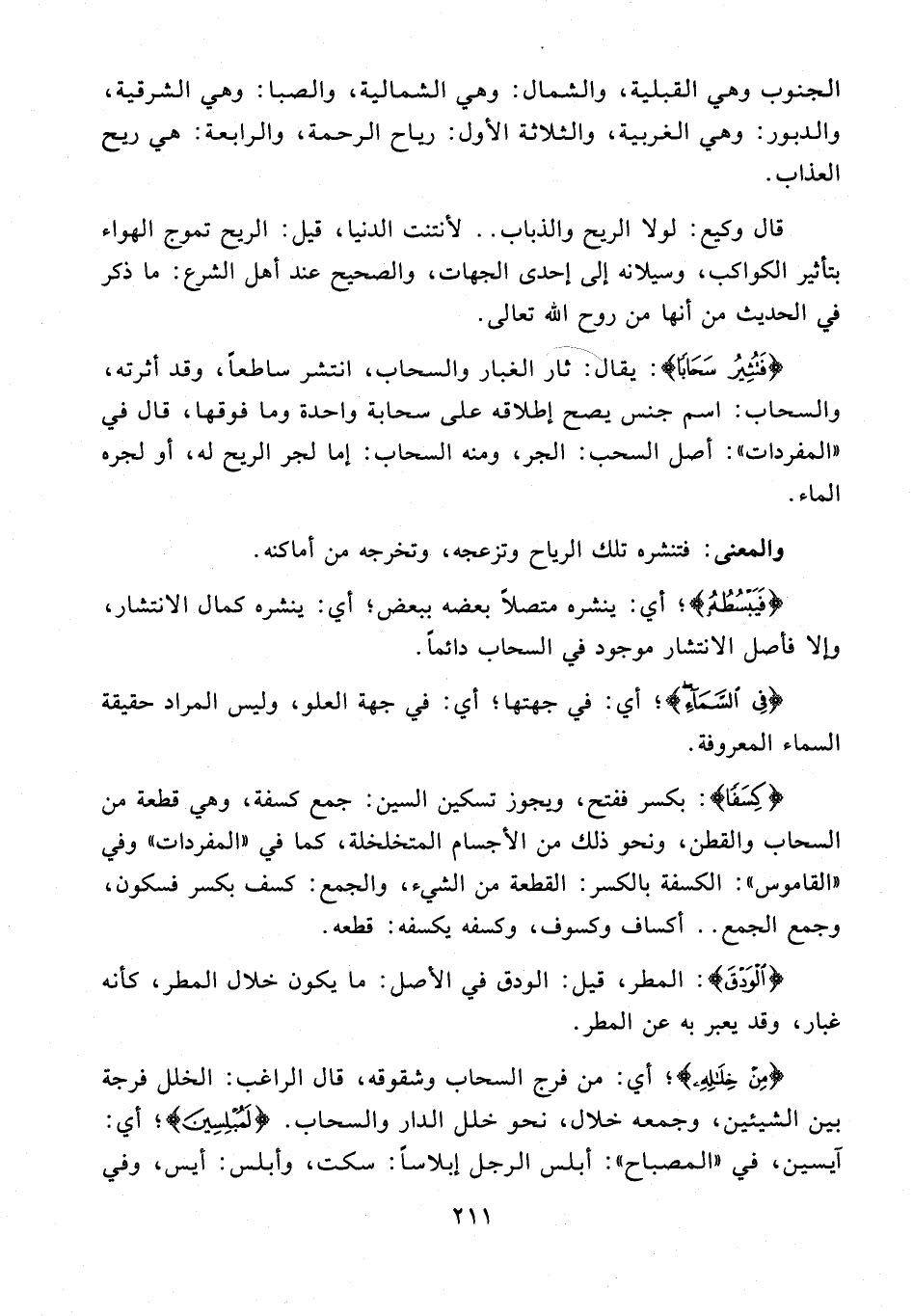 {فَتُثِيرُ سَحَابًا}: يقال ثار الغبار والسحاب، انتشر ساطعًا، وقد أثرته، والسحاب: اسم جنس يصح إطلاقه على سحابة واحدة وما فوقها، قال في "المفردات": أصل السحب: الجر، ومنه السحاب: إما لجر الريح له، أو لجره الماء.