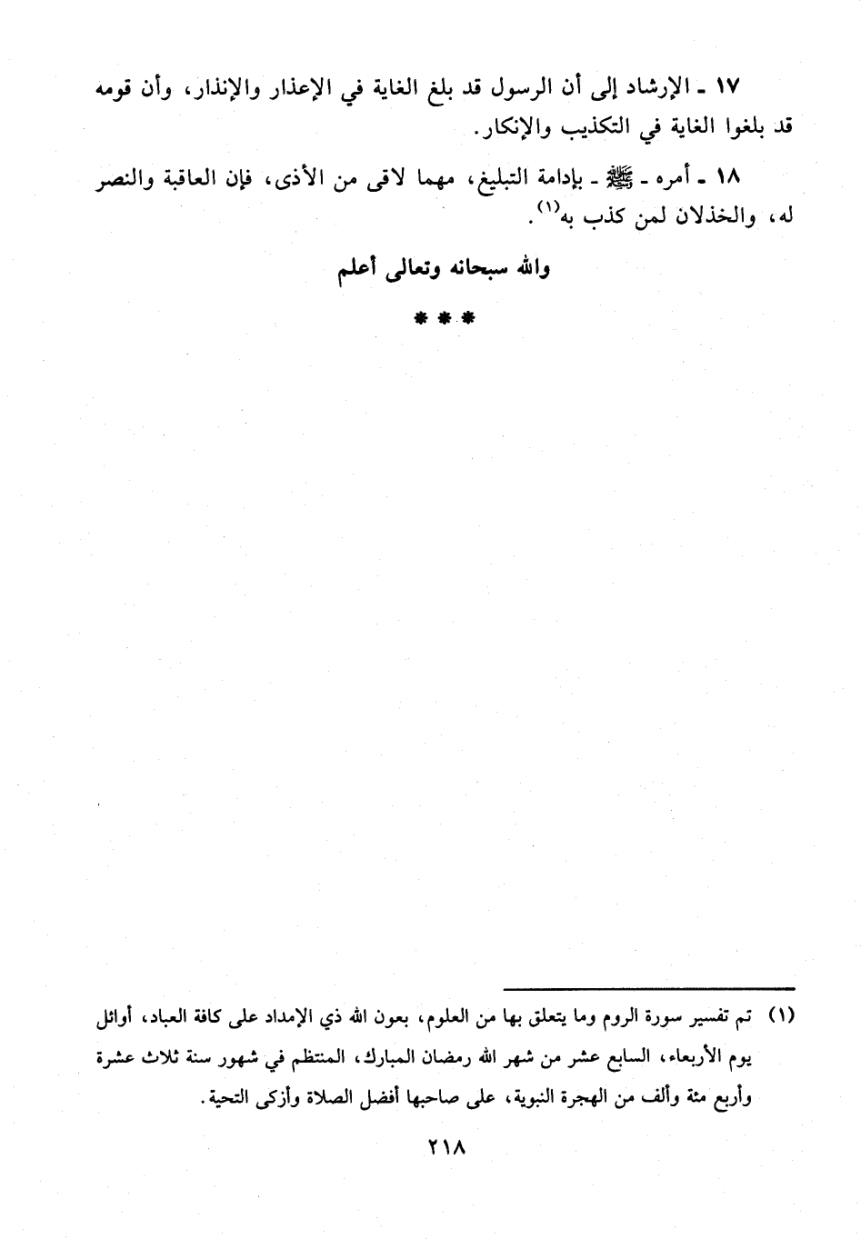 (¬1) تم تفسير سورة الروم وما يتعلق بها من العلوم، بعون الله ذي الإمداد على كافة العباد، أوائل يوم الأربعاء، السابع عشر من شهر الله رمضان المبارك، المنتظم في شهور سنة ثلاث عشرة وأربع مئة وألف من الهجرة النبوية، على صاحبها أفضل الصلاة وأزكى التحية.