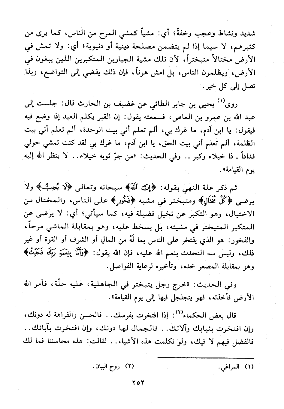 قال بعض الحكماء (¬2): إذا افتخرت بفرسك .. فالحسن والفراهة له دونك، وإن افتخرت بثيابك وآلاتك .. فالجمال لها دونك، وإن افتخرت بآبائك .. فالفضل فيهم لا فيك، ولو تكلمت هذه الأشياء .. لقالت: هذه محاسننا فما لك