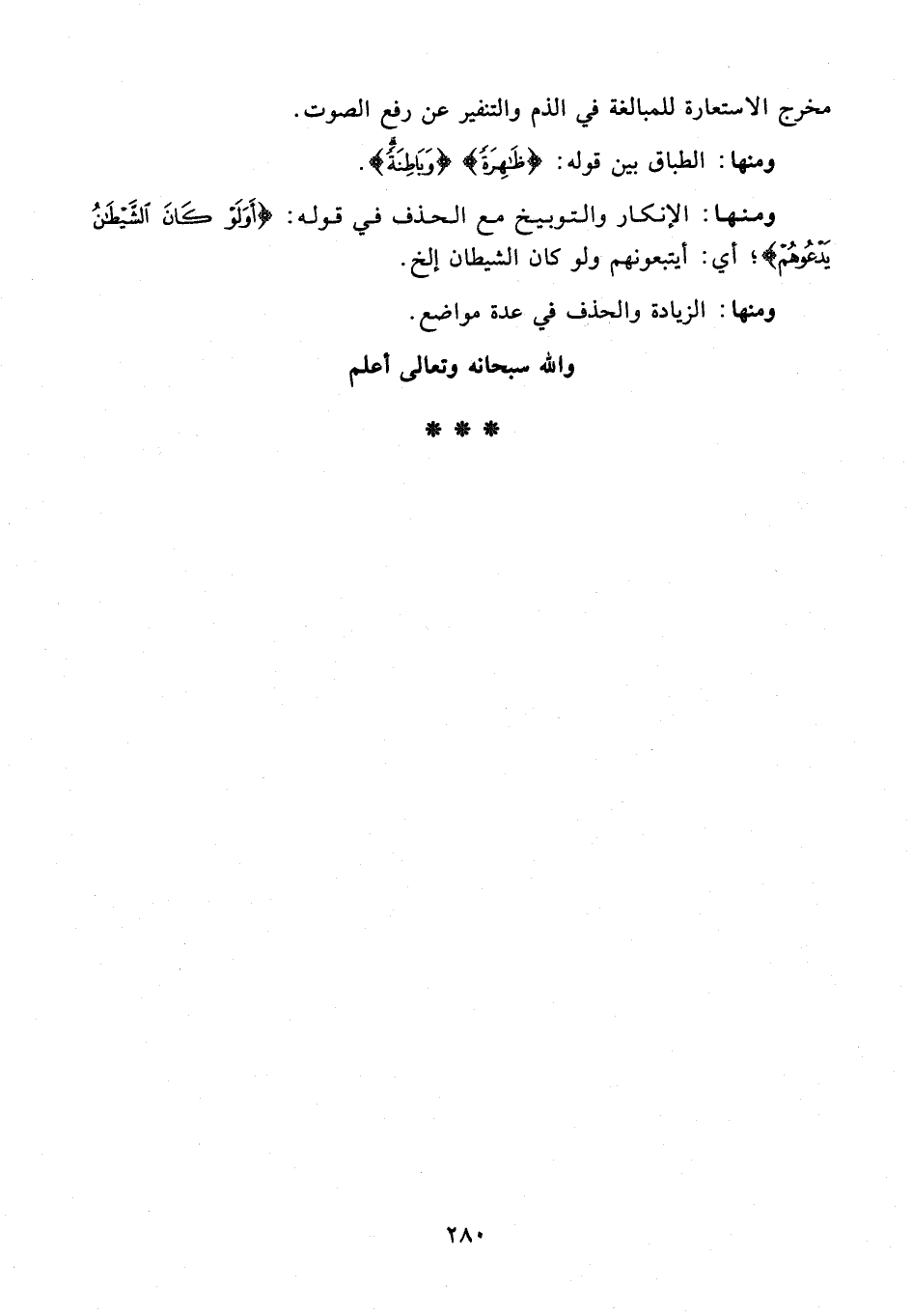 ومنها: الإنكار والتوبيخ مع الحذف في قوله: {أَوَلَوْ كَانَ الشَّيْطَانُ يَدْعُوهُمْ}؛ أي: أيتبعونهم ولو كان الشيطان إلخ.