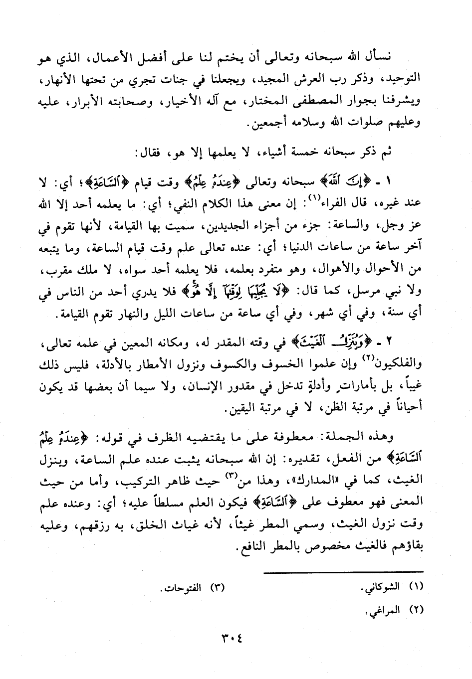 34 - ثم ذكر سبحانه خمسة أشياء، لا يعلمها إلا هو، فقال: