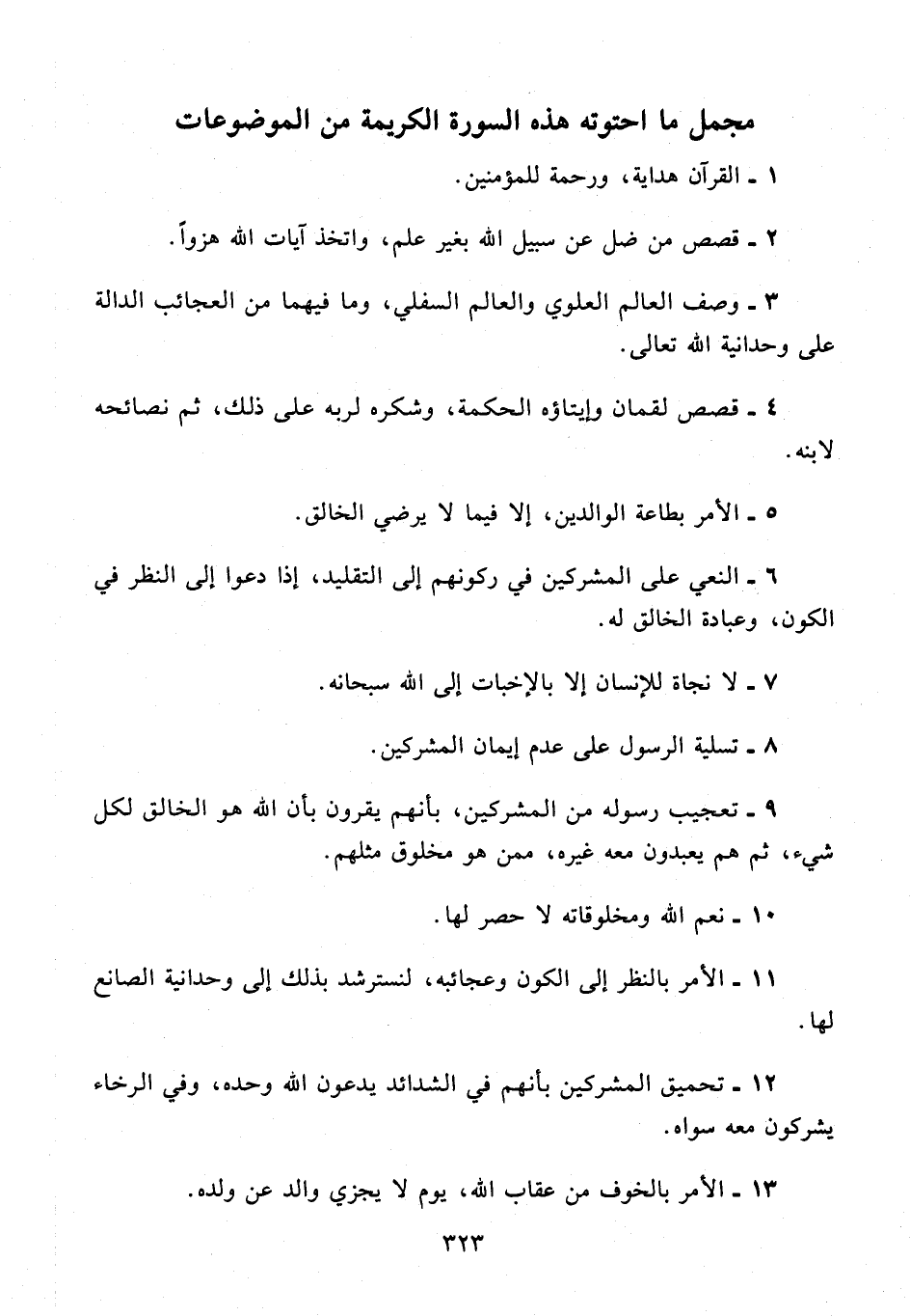4 - قصص لقمان وإيتاؤه الحكمة، وشكره لربه على ذلك، ثم نصائحه لابنه.