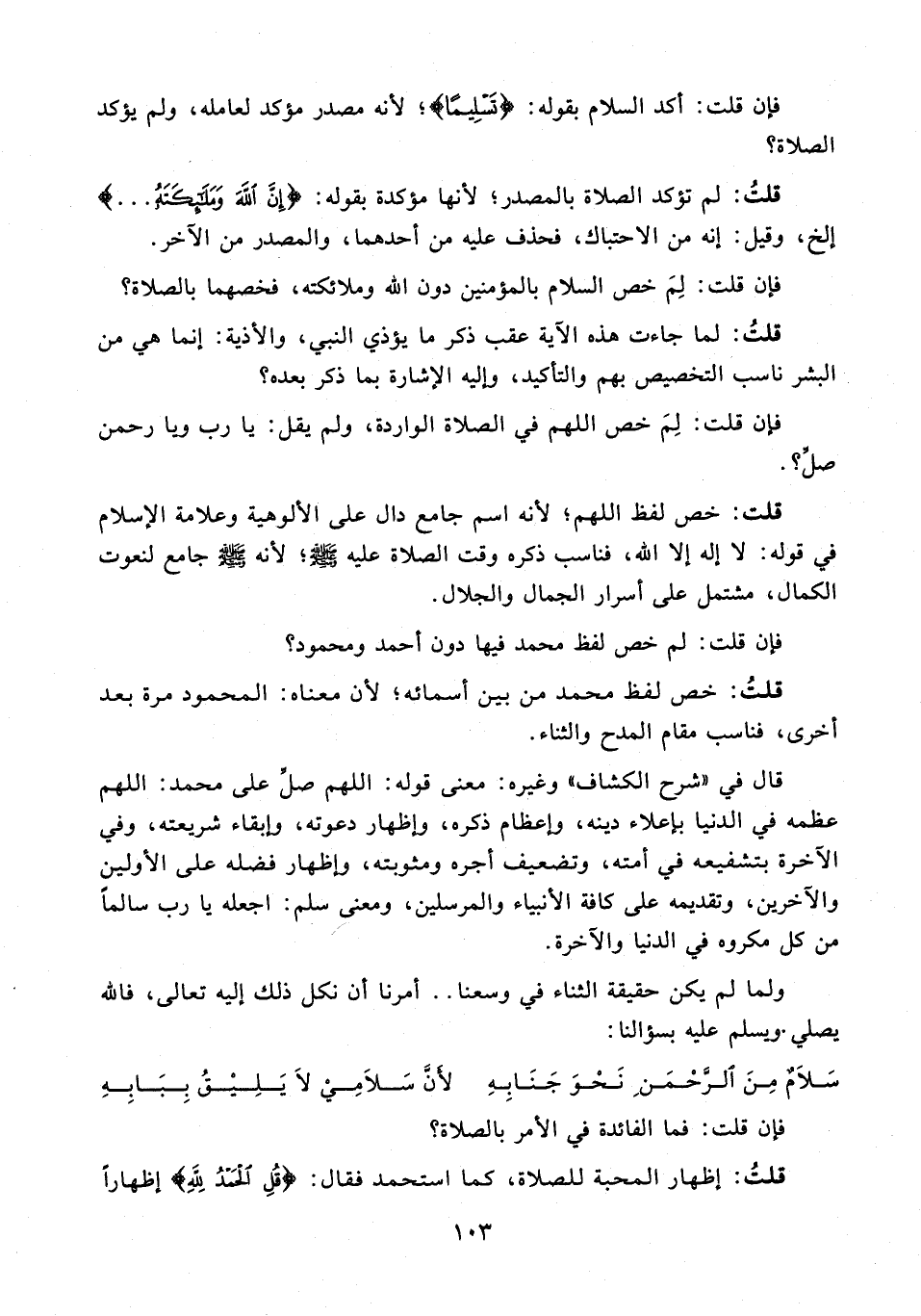 فإن قلت: أكد السلام بقوله: {تَسْلِيمًا}؛ لأنه مصدر مؤكد لعامله، ولم يؤكد الصلاة؟