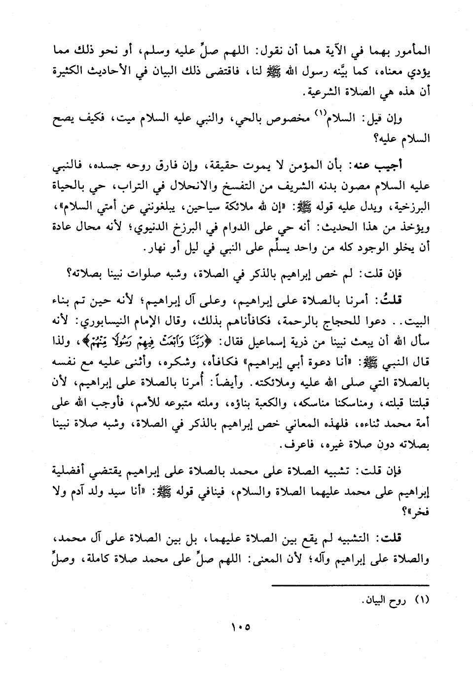 المأمور بهما في الآية هما أن نقول: اللهم صلِّ عليه وسلم، أو نحو ذلك مما يؤدي معناه، كما بيَّنه رسول الله - صلى الله عليه وسلم - لنا، فاقتضى ذلك البيان في الأحاديث الكثيرة أن هذه هي الصلاة الشرعية.
