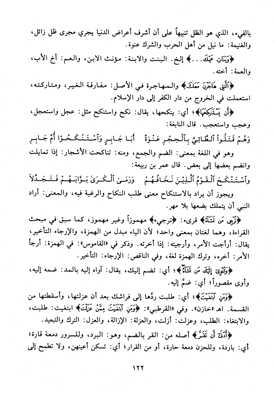 {اللَّاتِي هَاجَرْنَ مَعَكَ} والمهاجرة في الأصل: مفارقة الغير، ومتاركته، استعملت في الخروج من دار الكفر إلى دار الإِسلام.