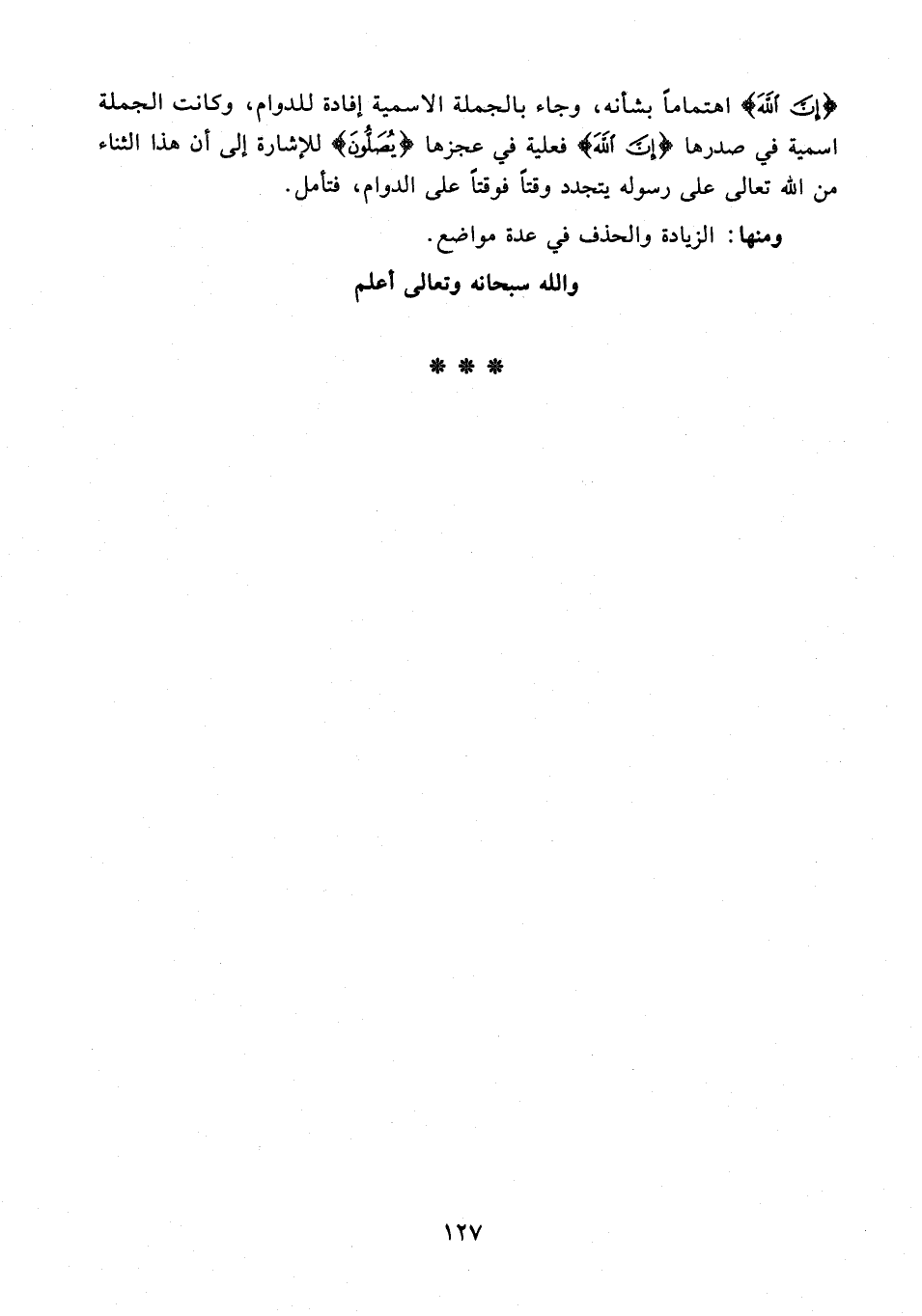 {إِنَّ اللَّهَ} اهتمامًا بشأنه، وجاء بالجملة الاسمية إفادة للدوام، وكانت الجملة اسمية في صدرها {إِنَّ اللَّهَ} فعلية في عجزها {يُصَلُّونَ} للإشارة إلى أن هذا الثناء من الله تعالى على رسوله يتجدد وقتًا فوقتًا على الدوام، فتأمل.