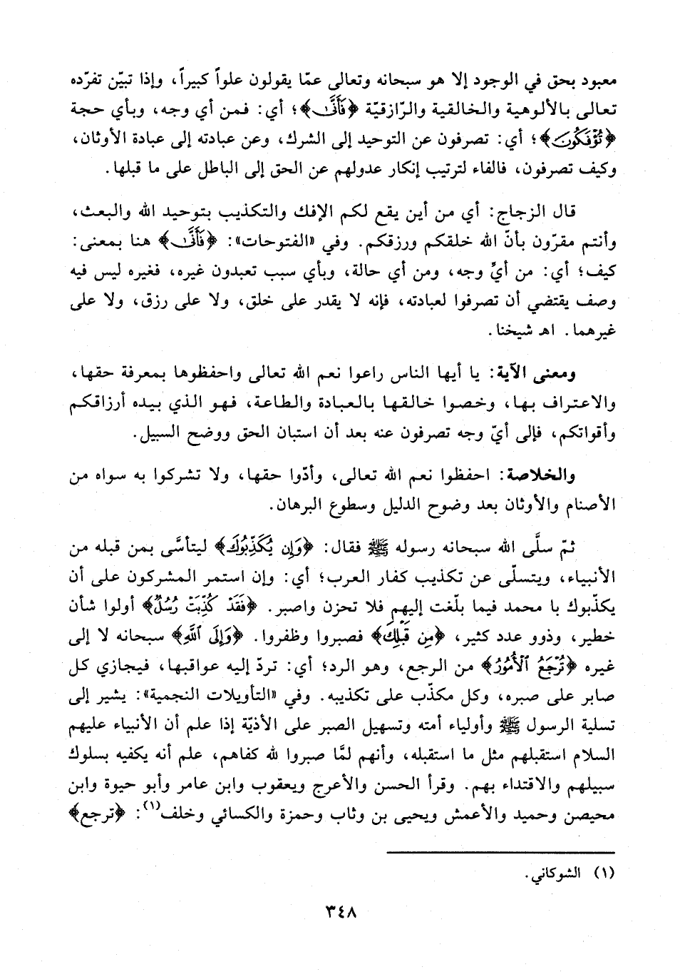ومعنى الآية: يا أيها الناس راعوا نعم الله تعالى واحفظوها بمعرفة حقها، والاعتراف بها، وخصوا خالقها بالعبادة والطاعة، فهو الذي بيده أرزاقكم وأقواتكم، فإلى أيّ وجه تصرفون عنه بعد أن استبان الحق ووضح السبيل.