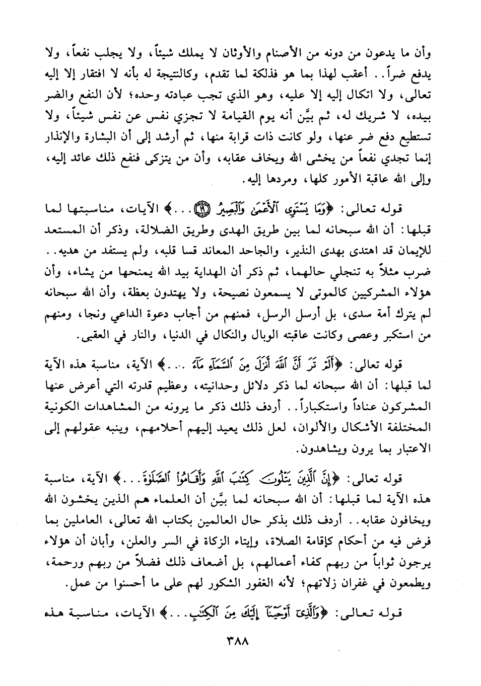 وأن ما يدعون من دونه من الأصنام والأوثان لا يملك شيئًا، ولا يجلب نفعًا، ولا يدفع ضرًا .. أعقب لهذا بما هو فذلكة لما تقدم، وكالنتيجة له بأنه لا افتقار إلا إليه تعالى، ولا اتكال إليه إلا عليه، وهو الذي تجب عبادته وحده؛ لأن النفع والضر بيده، لا شريك له، ثم بيَّن أنه يوم القيامة لا تجزي نفس عن نفس شيئًا، ولا تستطيع دفع ضر عنها, ولو كانت ذات قرابة منها، ثم أرشد إلى أن البشارة والإنذار إنما تجدي نفعًا من يخشى الله ويخاف عقابه، وأن من يتزكى فنفع ذلك عائد إليه، وإلى الله عاقبة الأمور كلها، ومردها إليه.