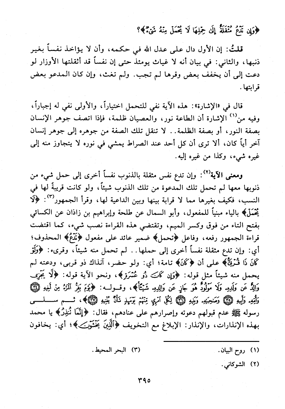 {وَإِنْ تَدْعُ مُثْقَلَةٌ إِلَى حِمْلِهَا لَا يُحْمَلْ مِنْهُ شَيْءٌ}؟