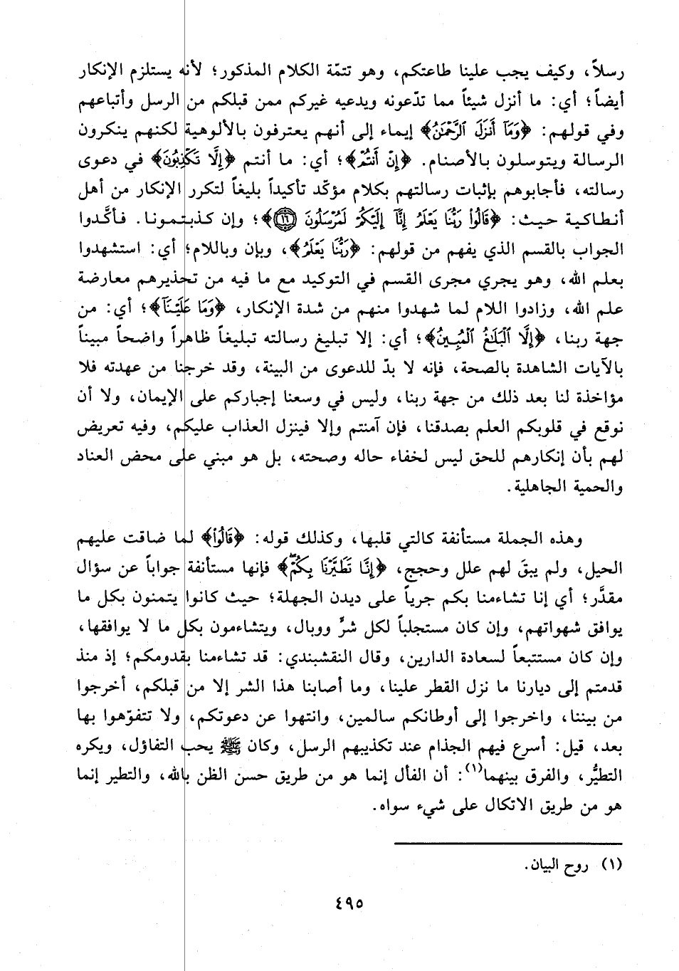 رسلًا، وكيف يجب علينا طاعتكم، وهو تتمّة الكلام المذكور؛ لأنه يستلزم الإنكار أيضًا؛ أي: ما أنزل شيئًا مما تدّعونه ويدعيه غيركم ممن قبلكم من الرسل وأتباعهم وفي قولهم: {وَمَا أَنْزَلَ الرَّحْمَنُ} إيماء إلى أنهم يعترفون بالألوهية لكنهم ينكرون الرسالة ويتوسلون بالأصنام. {إِنْ أَنْتُمْ}؛ أي: ما أنتم {إِلَّا تَكْذِبُونَ} في دعوى رسالته،