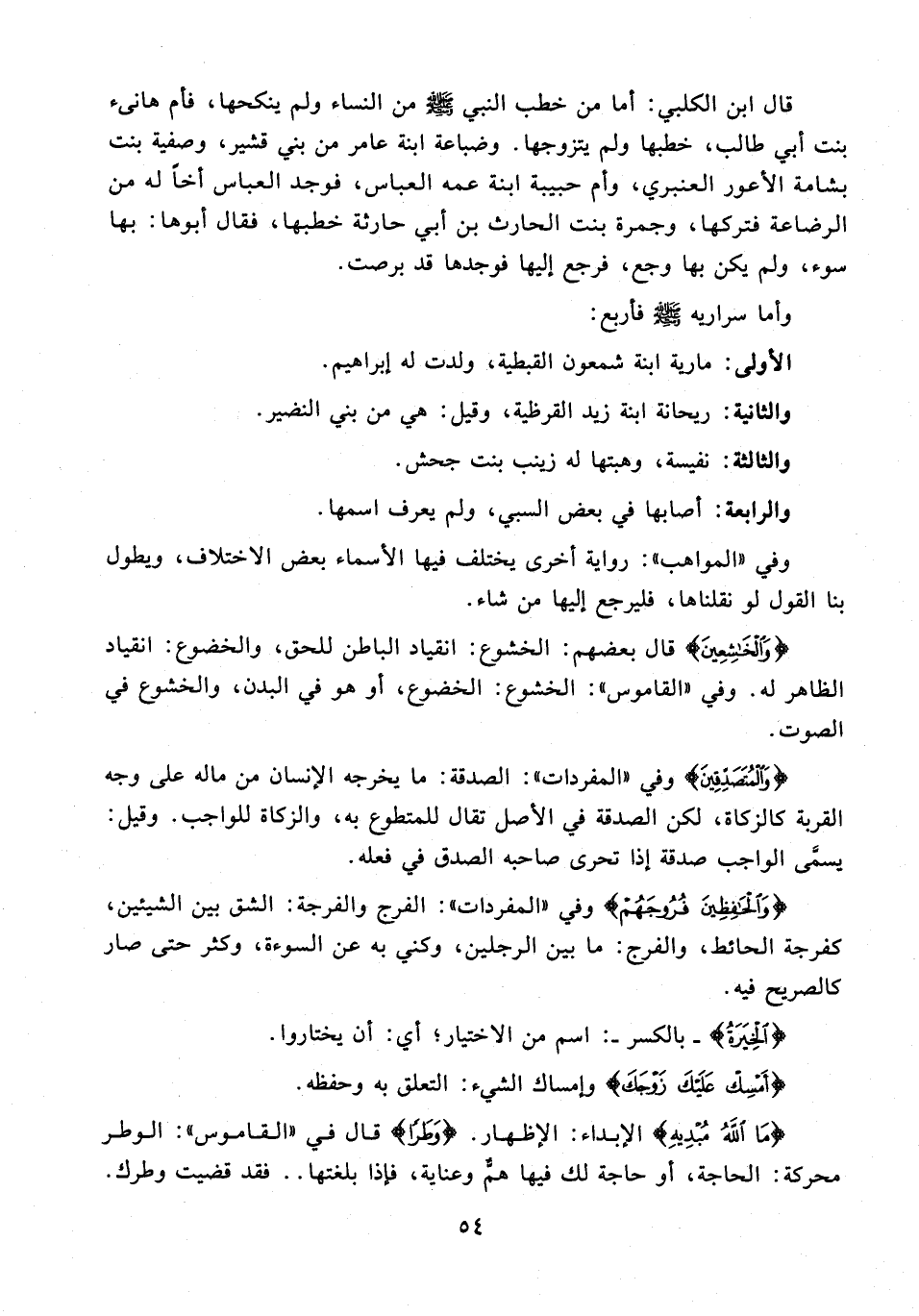 وأما سراريه - صلى الله عليه وسلم - فأربع: