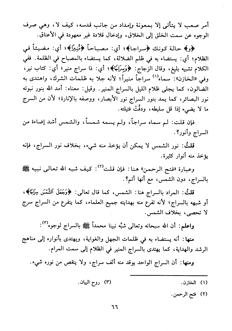 واعلم: أن الله سبحانه وتعالى شبَّه نبينا محمدًا - صلى الله عليه وسلم - بالسراج لوجوه (¬3):