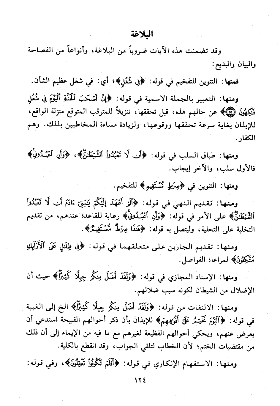 ومنها: طباق السلب في قوله: {أَنْ لا تَعْبُدُوا الشَّيْطانَ}، {وَأَنِ اعْبُدُونِي} فالأول سلب، والآخر إيجاب.