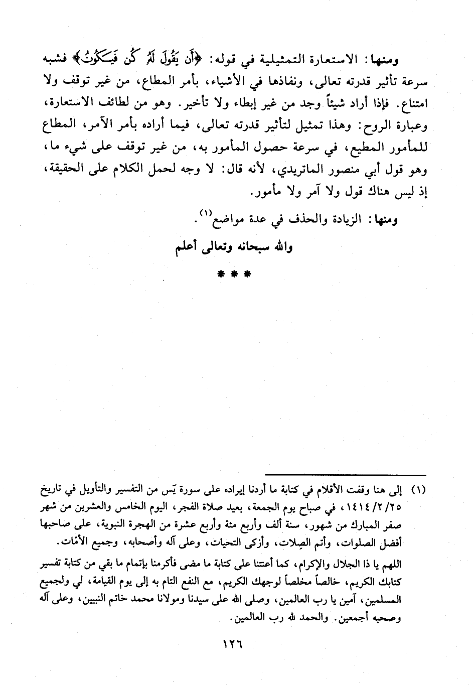 اللهم يا ذا الجلال والإكرام، كما أعنتنا على كتابة ما مضى فأكرمنا بإتمام ما بقي من كتابة تفسير كتابك الكريم، خالصا مخلصا لوجهك الكريم، مع النفع التام به إلى يوم القيامة، لي ولجميع المسلمين، آمين يا رب العالمين، وصلى الله على سيدنا ومولانا محمد خاتم النبيين، وعلى آله وصحبه أجمعين. والحمد لله رب العالمين.