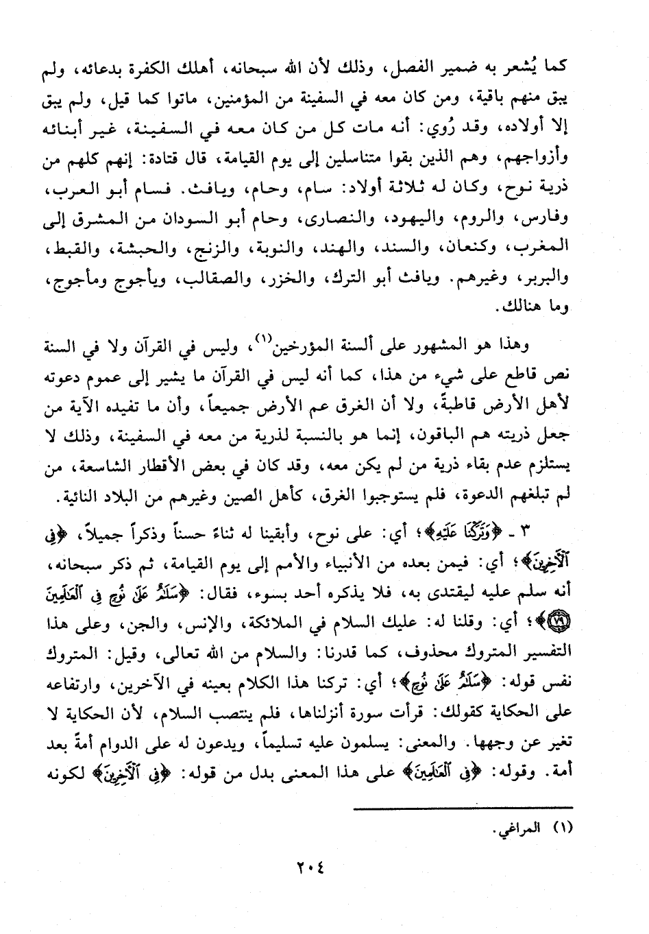 وهذا هو المشهور على ألسنة المؤرخين (¬1)، وليس في القرآن ولا في السنة نص قاطع على شيء من هذا، كما أنه ليس في القرآن ما يشير إلى عموم دعوته لأهل الأرض قاطبةً، ولا أن الغرق عم الأرض جميعًا، وأن ما تفيده الآية من جعل ذريته هم الباقون، إنما هو بالنسبة لذرية من معه في السفينة، وذلك لا يستلزم عدم بقاء ذرية من لم يكن معه، وقد كان في بعض الأقطار الشاسعة، من لم تبلغهم الدعوة، فلم يستوجبوا الغرق، كأهل الصين وغيرهم من البلاد النائية.