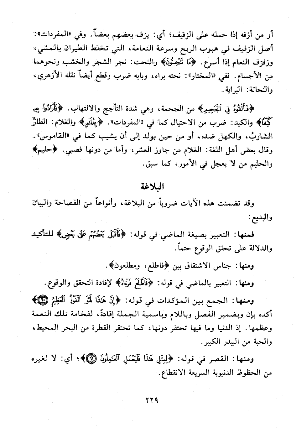 {فَأَلْقُوهُ فِي الْجَحِيمِ} من الجحمة، وهي شدة التأجج والالتهاب. {فَأَرادُوا بِهِ كَيْدًا} والكيد: ضرب من الاحتيال كما في «المفردات». {بِغُلامٍ} والغلام: الطارّ الشارب، والكهل ضده، أو من حين يولد إلى أن يشيب كما في «القاموس». وقال بعض أهل اللغة: الغلام من جاوز العشر، وأما من دونها فصبي. {حَلِيمٍ} والحليم من لا يعجل في الأمور، كما سبق.