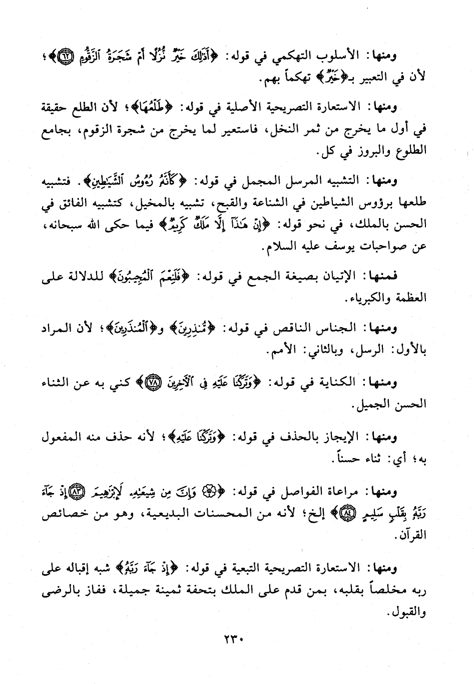 ومنها: مراعاة الفواصل في قوله: {وَإِنَّ مِنْ شِيعَتِهِ لَإِبْراهِيمَ (83) إِذْ جاءَ رَبَّهُ بِقَلْبٍ سَلِيمٍ (84)} إلخ؛ لأنه من المحسنات البديعية، وهو من خصائص القرآن.