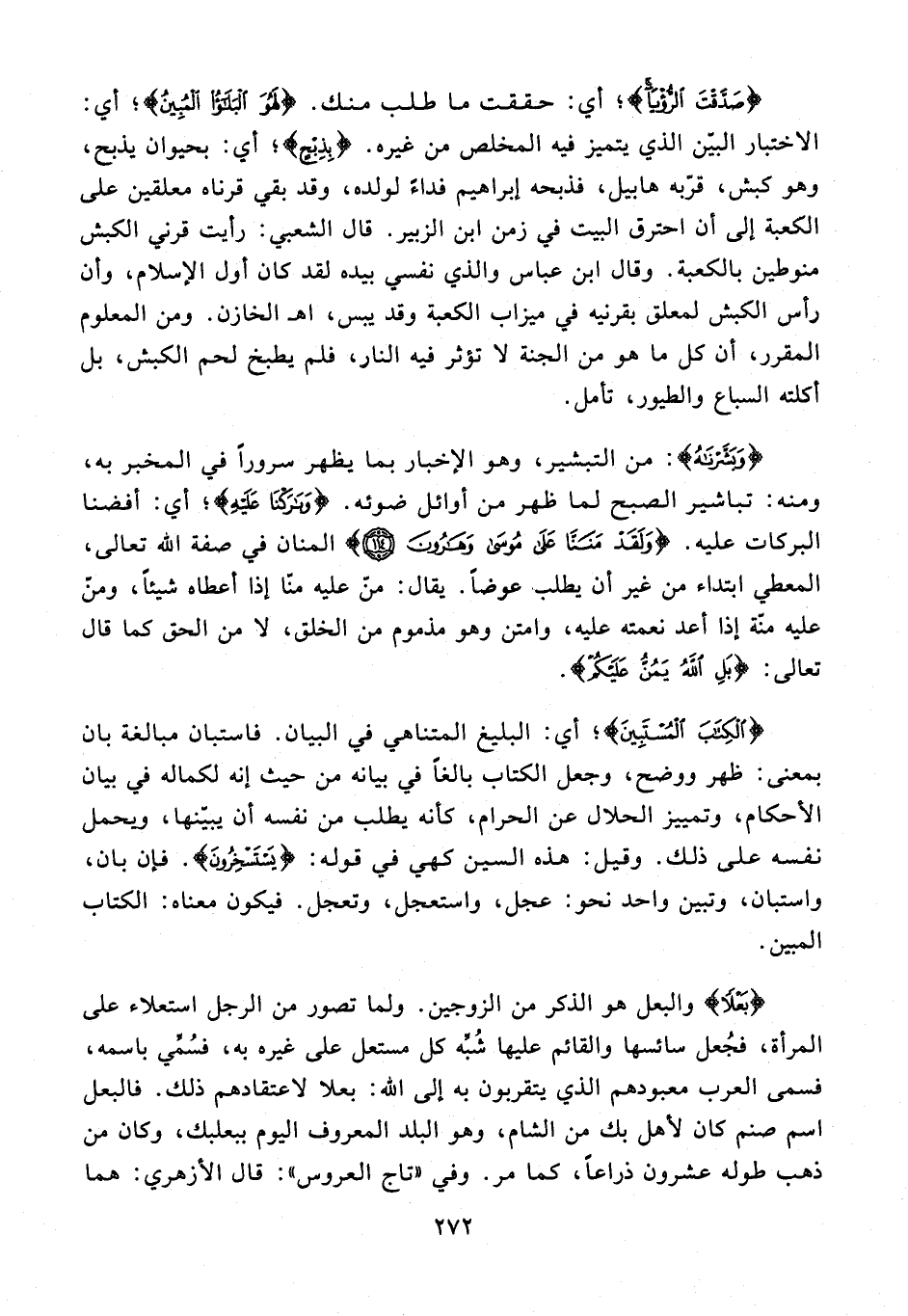 {بَعْلًا} والبعل هو الذكر من الزوجين. ولما تصور من الرجل استعلاء على المرأة، فجعل سائسها والقائم عليها شبّه كل مستعل على غيره به، فسمّي باسمه، فسمى العرب معبودهم الذي يتقربون به إلى الله: بعلا لاعتقادهم ذلك. فالبعل اسم صنم كان لأهل بك من الشام، وهو البلد المعروف اليوم ببعلبك، وكان من ذهب طوله عشرون ذراعًا، كما مر. وفي «تاج العروس»: قال الأزهري: هما