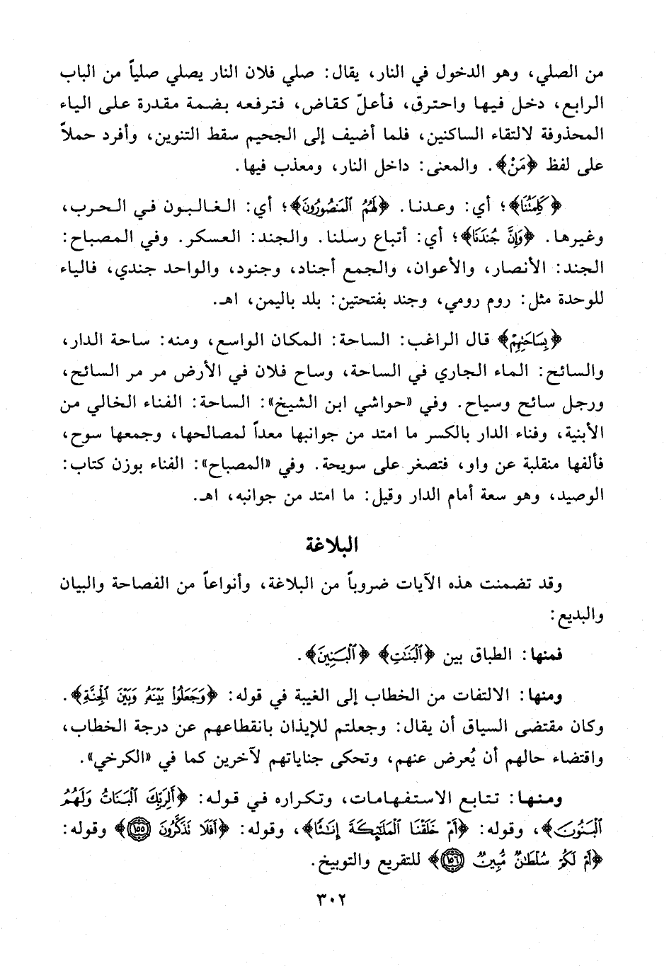 وقد تضمنت هذه الآيات ضروبًا من البلاغة، وأنواعًا من الفصاحة والبيان والبديع: