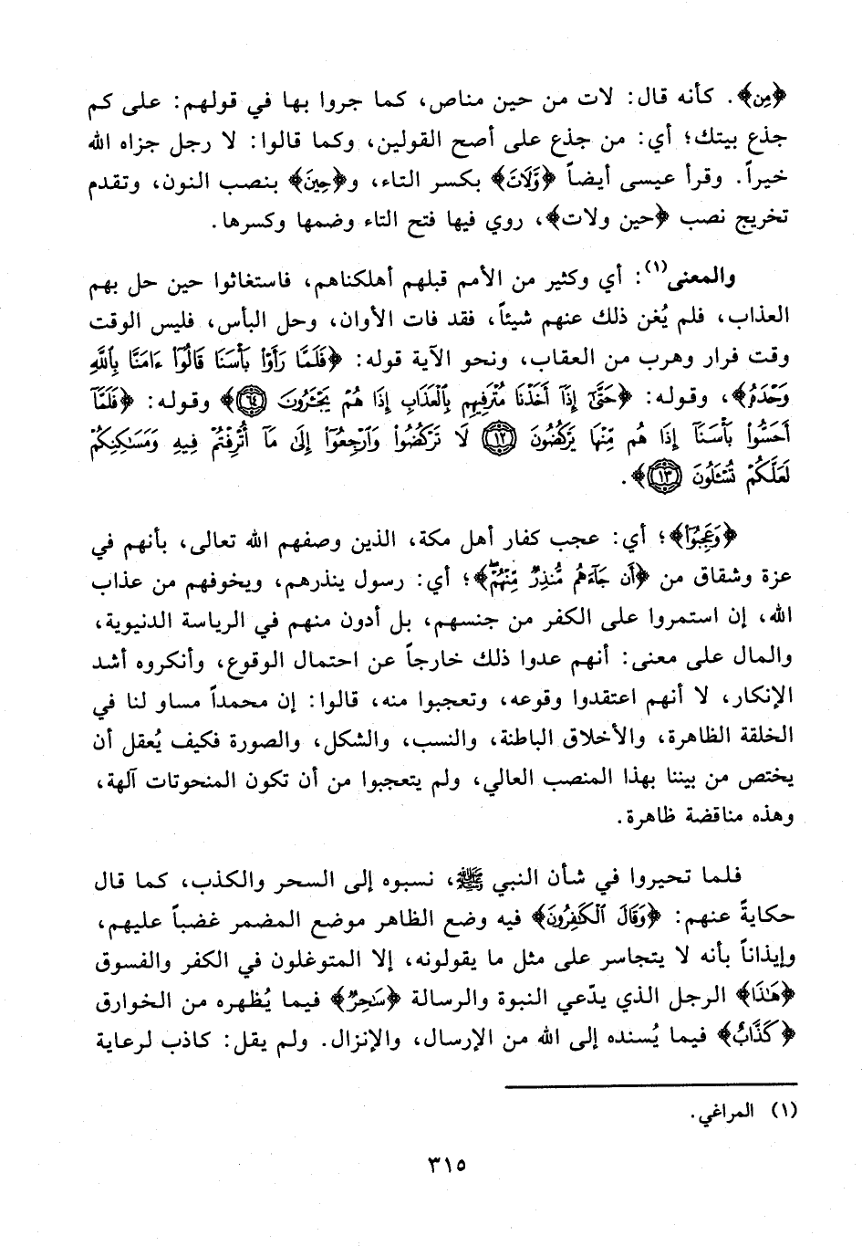 والمعنى (¬1): أي وكثير من الأمم قبلهم أهلكناهم، فاستغاثوا حين حل بهم العذاب، فلم يغن ذلك عنهم شيئًا، فقد فات الأوان، وحل البأس، فليس الوقت وقت فرار وهرب من العقاب، ونحو الآية قوله: {فَلَمَّا رَأَوْا بَأْسَنا قالُوا آمَنَّا بِاللَّهِ وَحْدَهُ}، وقوله: {حَتَّى إِذا أَخَذْنا مُتْرَفِيهِمْ بِالْعَذابِ إِذا هُمْ يَجْأَرُونَ (64)} وقوله: {فَلَمَّا أَحَسُّوا بَأْسَنا إِذا هُمْ مِنْها يَرْكُضُونَ (12) لا تَرْكُضُوا وَارْجِعُوا إِلى ما أُتْرِفْتُمْ فِيهِ وَمَساكِنِكُمْ لَعَلَّكُمْ تُسْئَلُونَ (13)}.