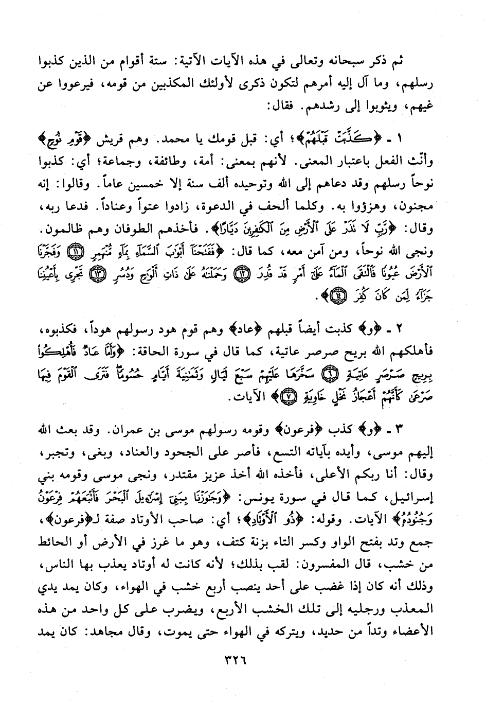 2 - {وَ} كذبت أيضًا قبلهم {عادٌ} وهم قوم هود رسولهم هودًا، فكذبوه، فأهلكهم الله بريح صرصر عاتية، كما قال في سورة الحاقة: {وَأَمَّا عادٌ فَأُهْلِكُوا بِرِيحٍ صَرْصَرٍ عاتِيَةٍ (6) سَخَّرَها عَلَيْهِمْ سَبْعَ لَيالٍ وَثَمانِيَةَ أَيَّامٍ حُسُومًا فَتَرَى الْقَوْمَ فِيها صَرْعى كَأَنَّهُمْ أَعْجازُ نَخْلٍ خاوِيَةٍ (7)} الآيات.