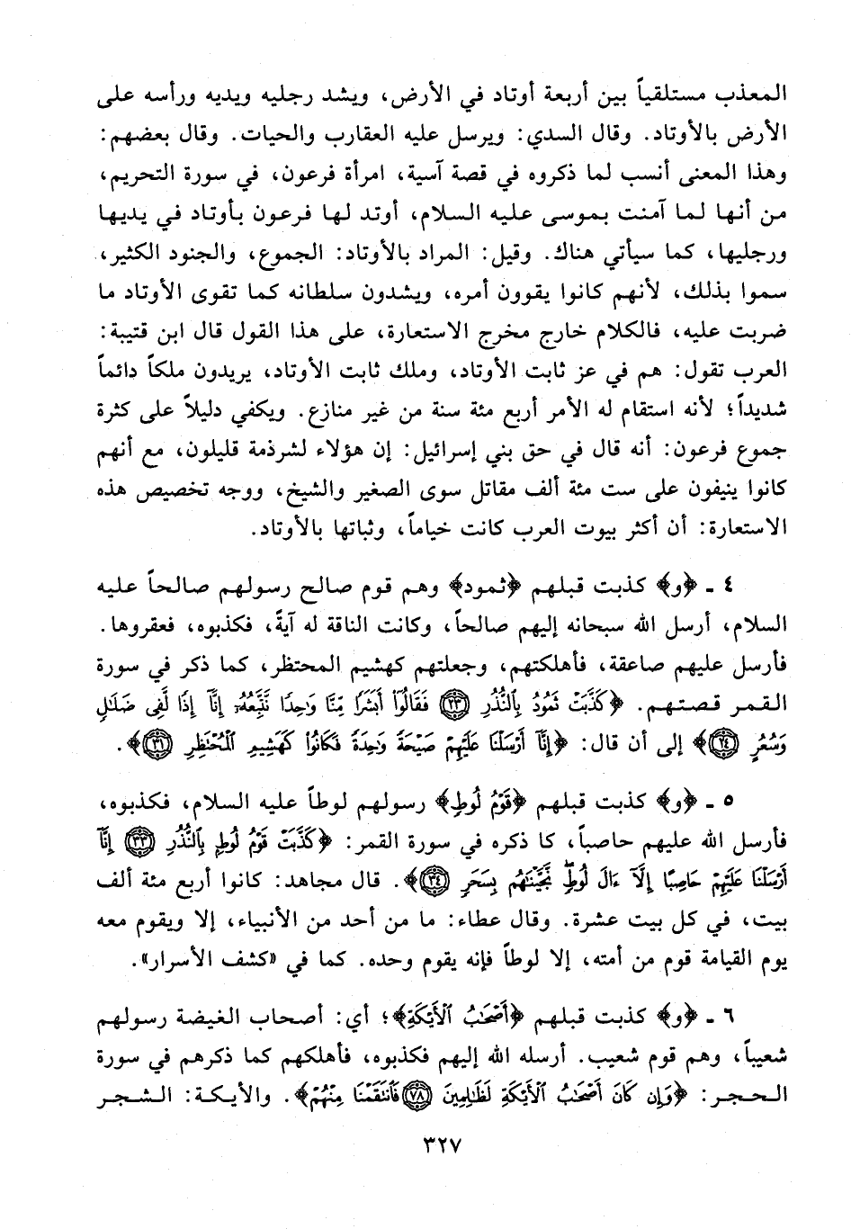5 - {وَ} كذبت قبلهم {قَوْمُ لُوطٍ} رسولهم لوطًا عليه السلام، فكذبوه، فأرسل الله عليهم حاصبًا، كا ذكره في سورة القمر: {كَذَّبَتْ قَوْمُ لُوطٍ بِالنُّذُرِ (33) إِنَّا أَرْسَلْنا عَلَيْهِمْ حاصِبًا إِلَّا آلَ لُوطٍ نَجَّيْناهُمْ بِسَحَرٍ (34)}. قال مجاهد: كانوا أربع مئة ألف بيت، في كل بيت عشرة. وقال عطاء: ما من أحد من الأنبياء، إلا ويقوم معه يوم القيامة قوم من أمته، إلا لوطًا فإنه يقوم وحده. كما في «كشف الأسرار».