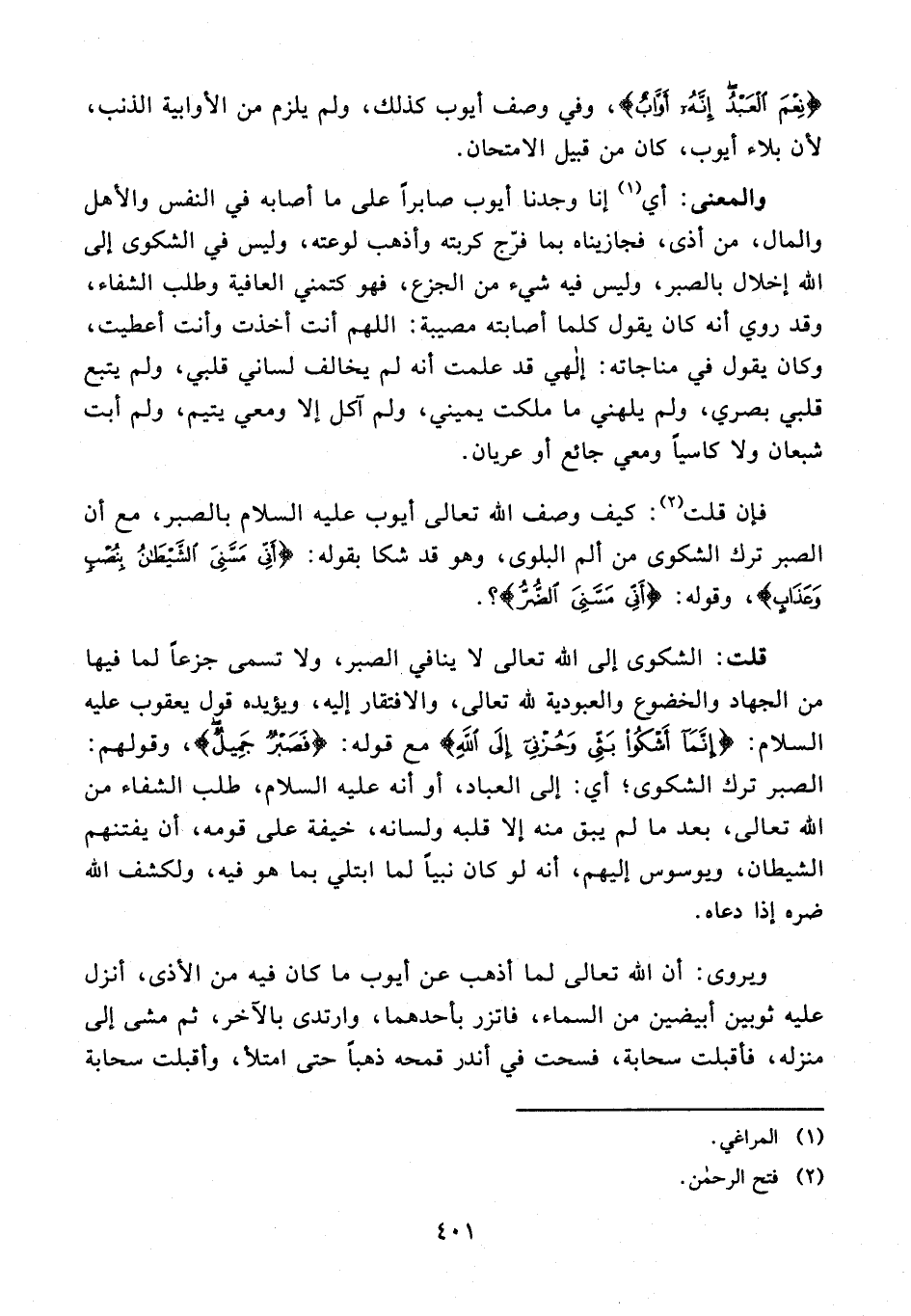 فإن قلت (¬2): كيف وصف الله تعالى أيوب عليه السلام بالصبر، مع أن الصبر ترك الشكوى من ألم البلوى، وهو قد شكا بقوله: {أَنِّي مَسَّنِيَ الشَّيْطانُ بِنُصْبٍ وَعَذابٍ}، وقوله: {أَنِّي مَسَّنِيَ الضُّرُّ}؟.