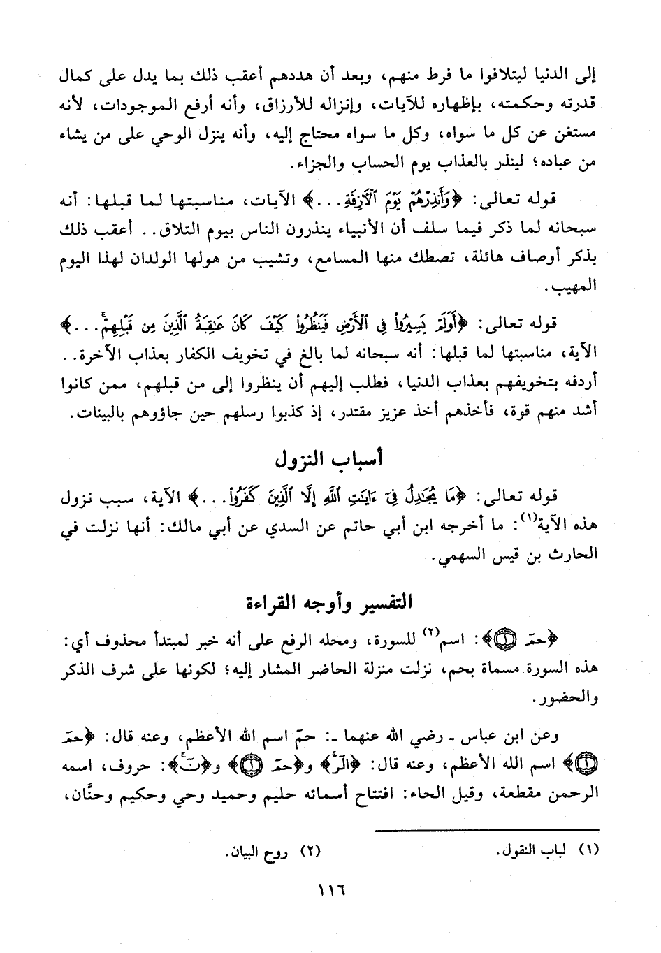 1 - {حم (1)}: اسم (¬2) للسورة، ومحله الرفع على أنه خبر لمبتدأ محذوف أي: هذه السورة مسماة بحم، نزلت منزلة الحاضر المشار إليه؛ لكونها على شرف الذكر والحضور.