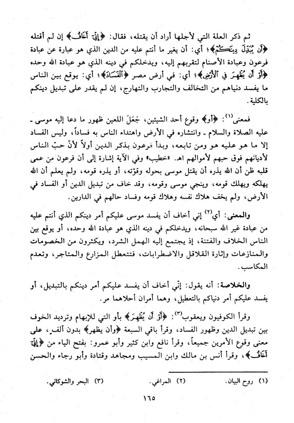 وقرأ الكوفيون ويعقوب (¬3): {أَوْ أَنْ يُظْهِرَ} بأو التي للإبهام وترديد الخوف بين تبديل الدين وظهور الفساد، وقرأ باقي السبعة {وأن يظهر} بدون ألفٍ، على معنى وقوع الأمرين جميعًا، وقرأ نافع وابن كثير وأبو عمرو: بفتح الياء من {إِنِّي أَخَافُ}، وقرأ أنس بن مالك وابن المسيب ومجاهد وقتادة وأبو رجاء والحسن