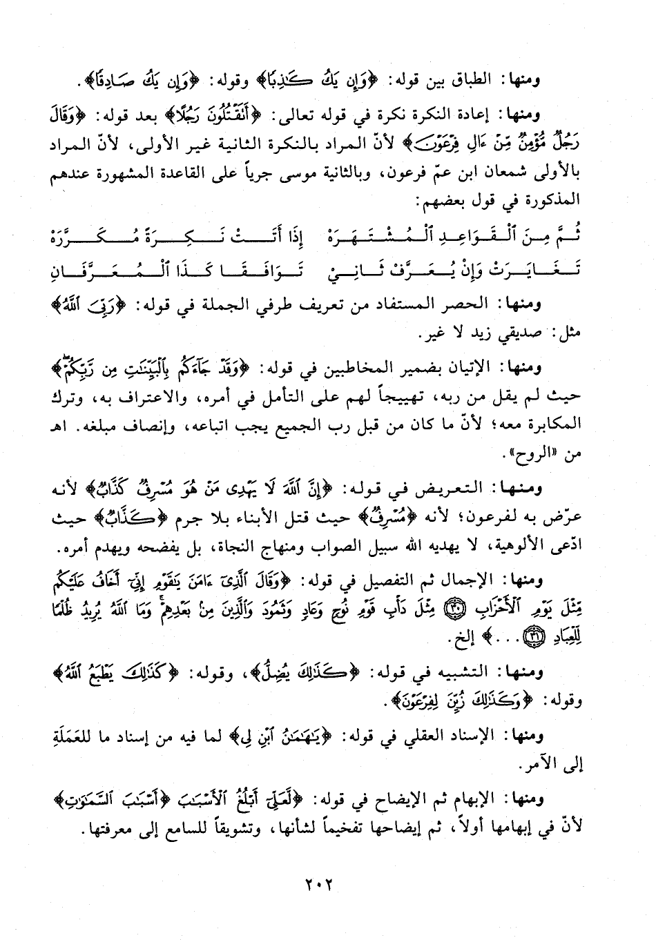 ومنها: إعادة النكرة نكرة في قوله تعالى: {أَتَقْتُلُونَ رَجُلًا} بعد قوله: {وَقَالَ رَجُلٌ مُؤْمِنٌ مِنْ آلِ فِرْعَوْنَ} لأنّ المراد بالنكرة الثانية غير الأولى, لأنّ المراد بالأولى شمعان ابن عمّ فرعون، وبالثانية موسى جريًا على القاعدة المشهورة عندهم المذكورة في قول بعضهم: