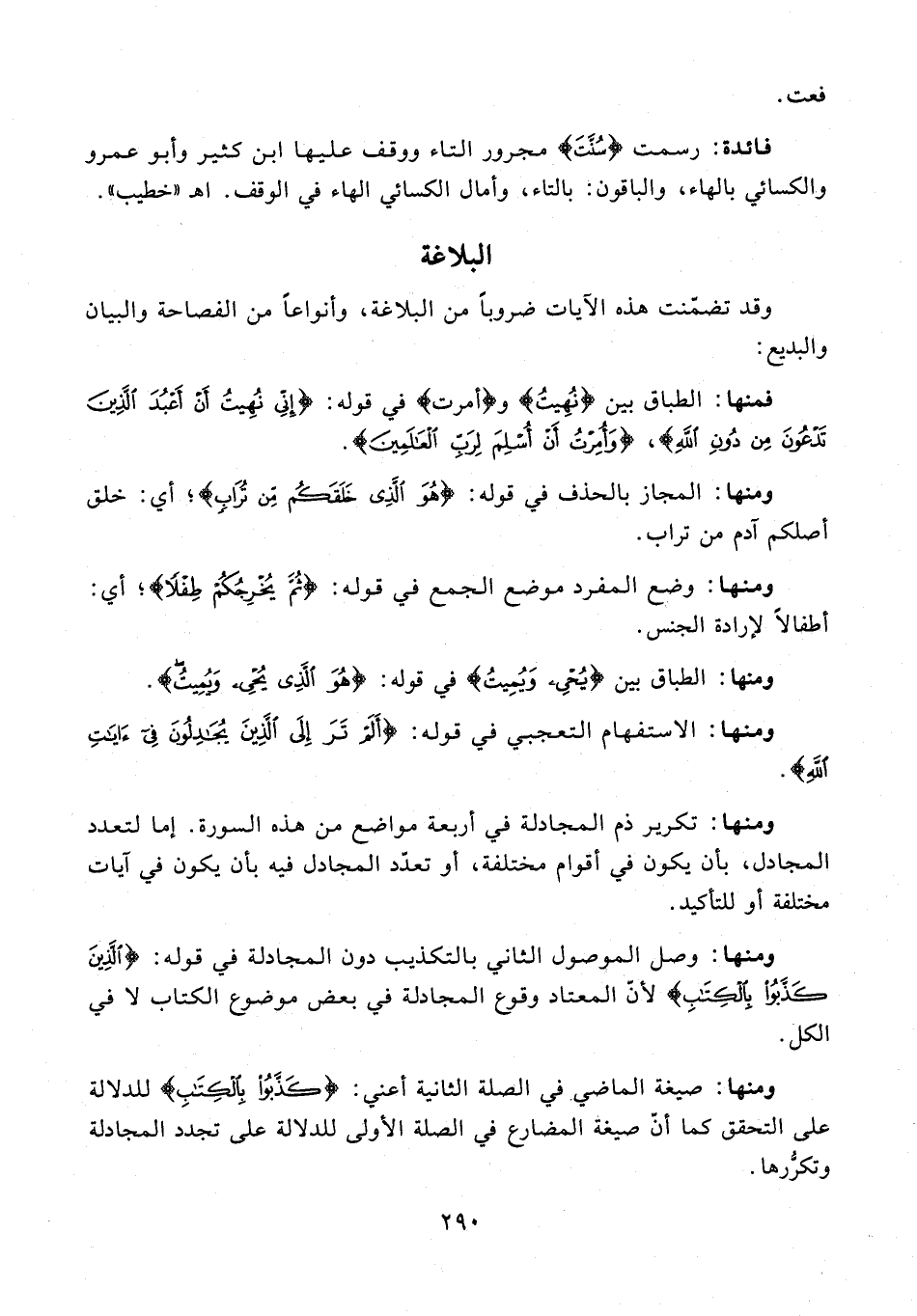 ومنها: صيغة الماضي في الصلة الثانية أعني: {كَذَّبُوا بِالْكِتَابِ} للدلالة على التحقق كما أنّ صيغة المضارع في الصلة الأولى للدلالة على تجدد المجادلة وتكرُّرها.