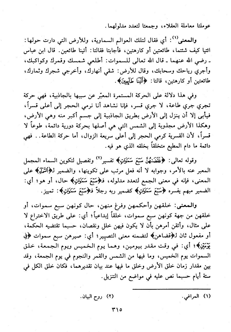وفي هذا دلالة على الحركة المستمرة المعبّر عن سببها بالجاذبية، فهي حركة تجري جري طاعة، لا جري قسر، فإنا نشاهد أنا نرمي الحجر إلى أعلى قسرًا، فيأبى إلا أن ينزل إلى الأرض بطريق الجاذبية إلى جسم أكبر منه وهي الأرض، وهكذا الأرض مجذوبة إلى الشمس التي هي أصلها بحركة دورية دائمة، طوعًا لا قسرًا، لأن القسرية كرمي الحجر إلى أعلى سريعة الزوال، أما حركة الطاعة .. فهي دائمة ما دام المطيع متخلقًا بخلقه الذي هو فيه.