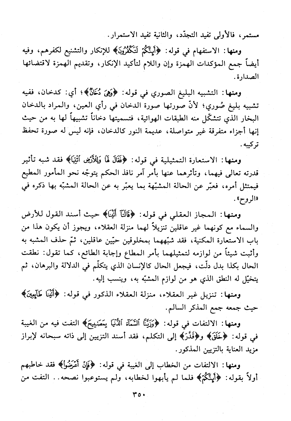 ومنها: تنزيل غير العقلاء، منزلة العقلاء الذكور في قوله: {أَتَيْنَا طَائِعِينَ} حيث جمعه جمع المذكر السالم.