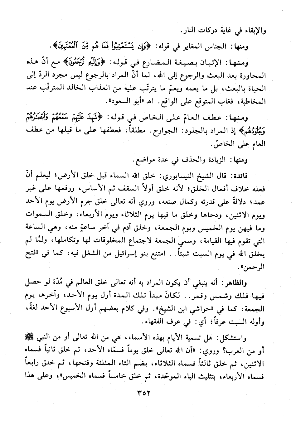 والظاهر: أنه ينبغي أن يكون المراد به أنه تعالى خلق العالم في مُدّة لو حصل فيها فلك وشمس وقمر .. لكانَ مبدأ تلك المدة أول يوم الأحد، وآخرها يوم الجمعة، كما في "حواشي ابن الشيخ". وفي كلام بعضهم أولى الأسبوع الأحد لغةً، وأوله السبت عرفًا؛ أي: في عرف الفقهاء.