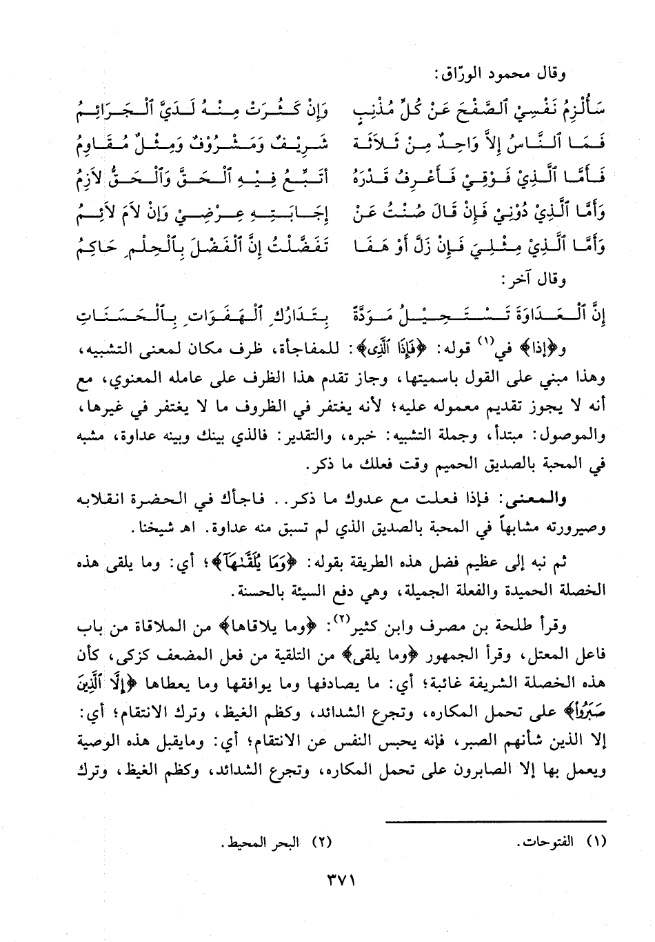 إِنَّ الْعَدَاوَةً تَسْتَحِيْلُ مَوَدَّةً ... بِتَدَارُكِ الْهَفَوَاتِ بِالْحَسَنَاتِ