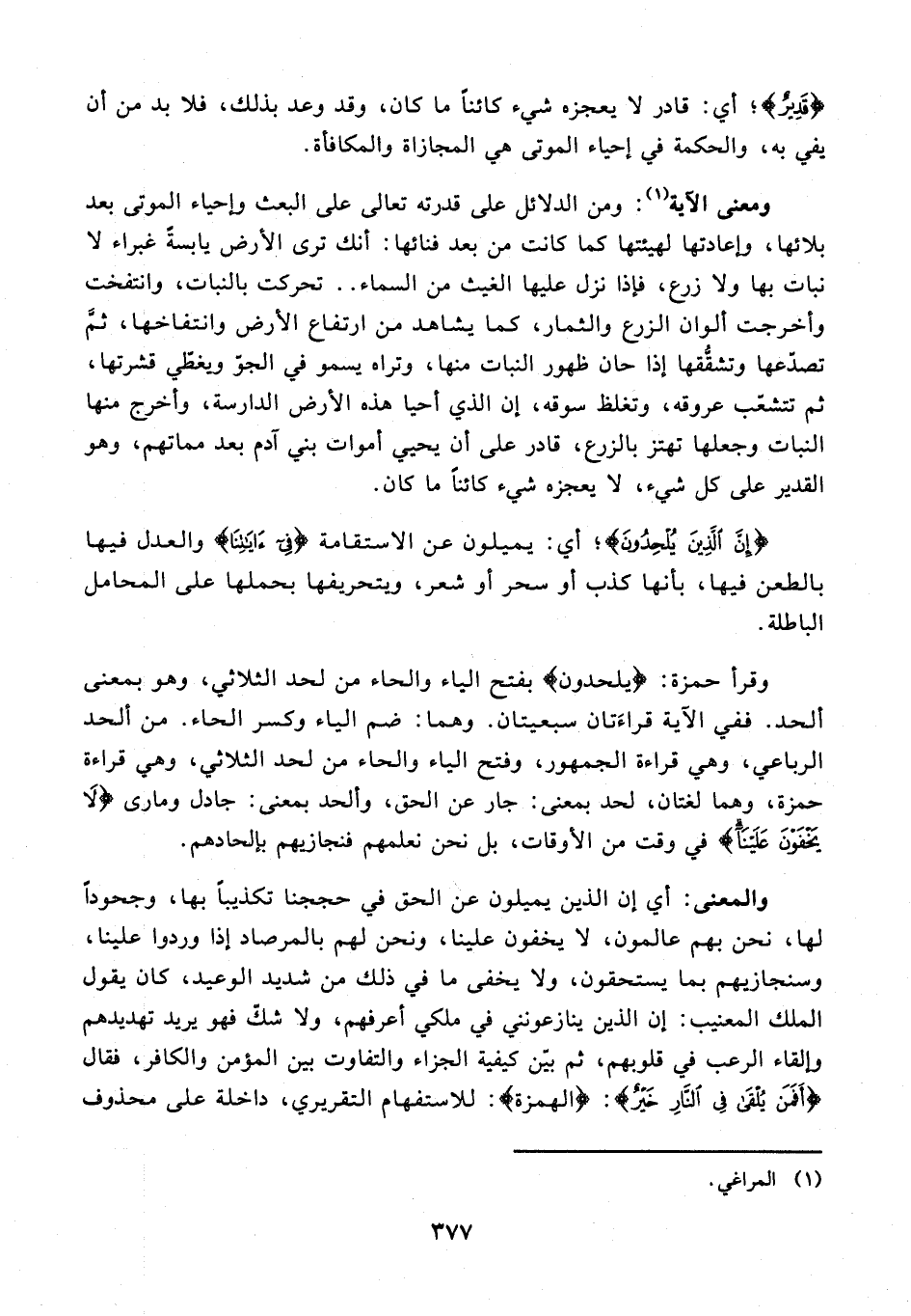 {قَدِيرٌ}؛ أي: قادر لا يعجزه شيء كائنًا ما كان، وقد وعد بذلك، فلا بد من أن يفي به، والحكمة في إحياء الموتى هي المجازاة والمكافأة.