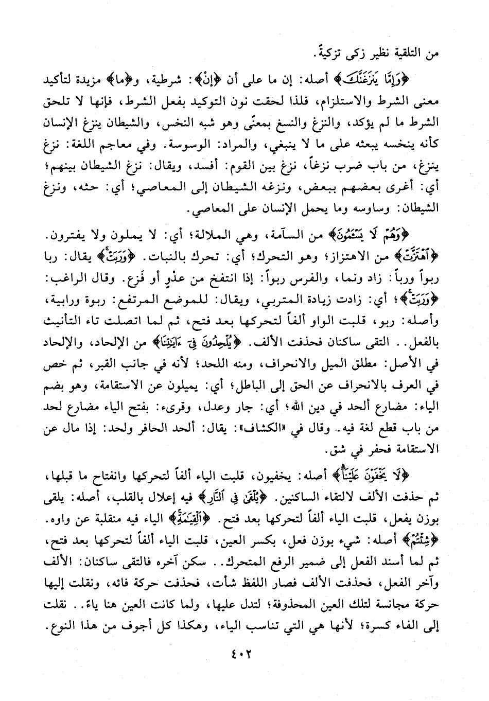 {وَإِمَّا يَنْزَغَنَّكَ} أصله: إن ما على أن {إنْ}: شرطية، و {ما} مزيدة لتأكيد معنى الشرط والاستلزام، فلذا لحقت نون التوكيد بفعل الشرط، فإنها لا تلحق الشرط ما لم يؤكد، والنزغ والنسغ بمعنًى وهو شبه النخس، والشيطان ينزغ الإنسان كأنه ينخسه يبعثه على ما لا ينبغي، والمراد: الوسوسة. وفي معاجم اللغة: نزغ ينزغ، من باب ضرب نزغًا، نزغ بين القوم: أفسد، ويقال: نزغ الشيطان بينهم؛ أي: أغرى بعضهم ببعض، ونزغه الشيطان إلى المعاصي؛ أي: حثه، ونزغ الشيطان: وساوسه وما يحمل الإنسان على المعاصي.