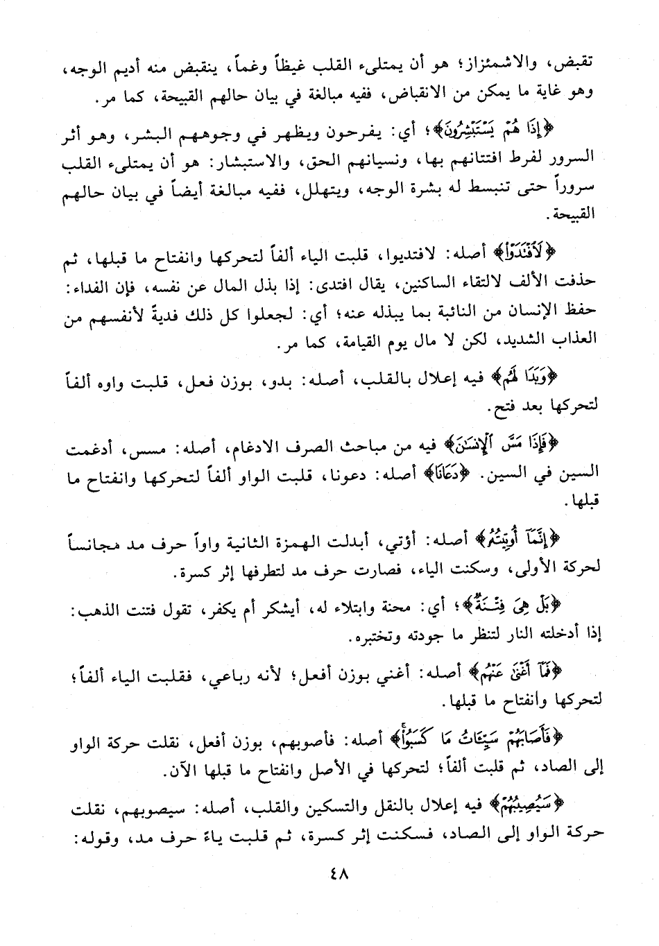 {فَإِذَا مَسَّ الْإِنْسَانَ} فيه من مباحث الصرف الادغام، أصله: مسس، أدغمت السين في السين. {دَعَانَا} أصله: دعونا، قلبت الواو ألفًا لتحركها وانفتاح ما قبلها.